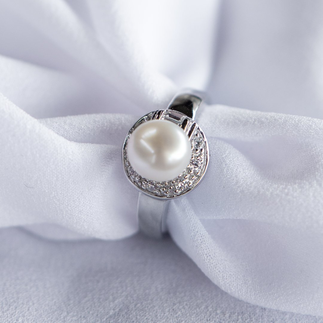 Anillo de plata 925 con zirconias cúbicas con Perla Mallorca.