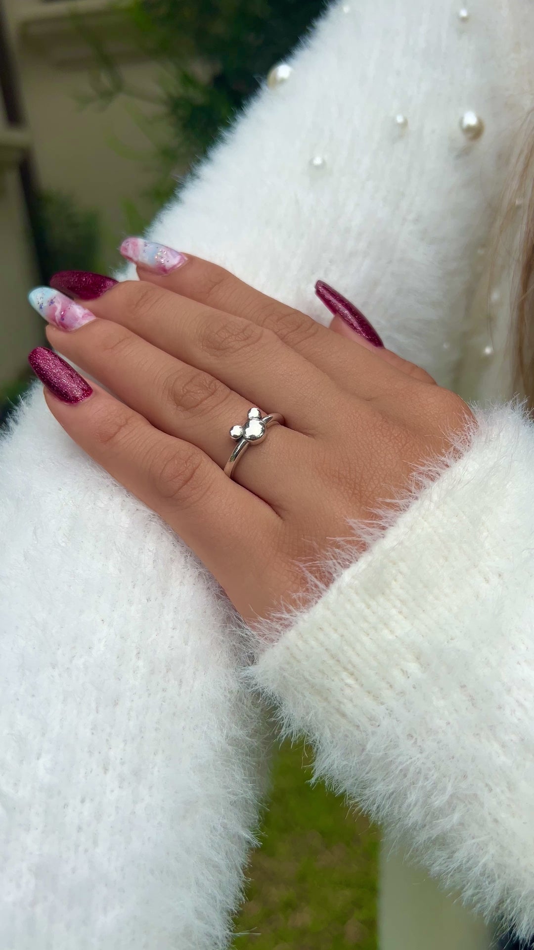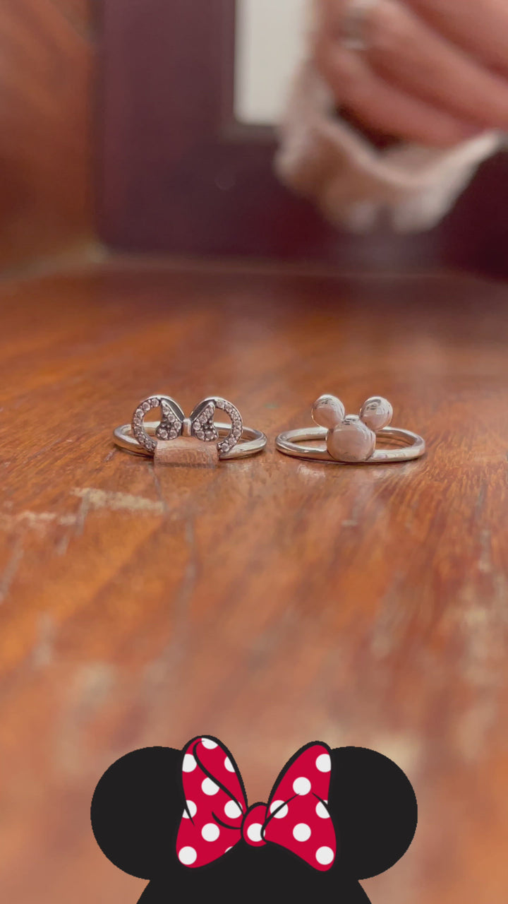 Con la icónica silueta de Mickey Mouse, se desliza dentro del correspondiente anillo de rompecabezas de Minnie Mouse para crear una apariencia completamente nueva.