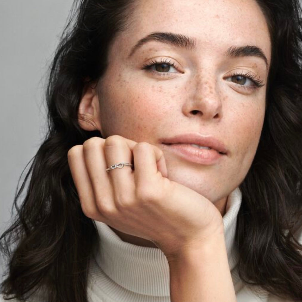 Con la interpretación única de Pandora del símbolo del infinito, el amor es doble. El icónico nudo se envuelve alrededor del centro situado asimétricamente para significar la intensidad de la conexión. Este fino anillo del infinito en plata de primera ley es la representación perfecta del vínculo inquebrantable.