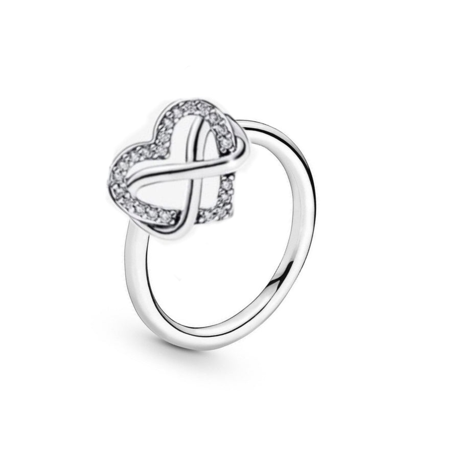 Celebra tu amor eterno a la familia con este Anillo Corazón Infinito Brillante. En plata de primera ley, con un diseño de corazón calado con gemas brillantes a lo largo del borde y un símbolo asimétrico del infinito entrelazado alrededor del corazón.