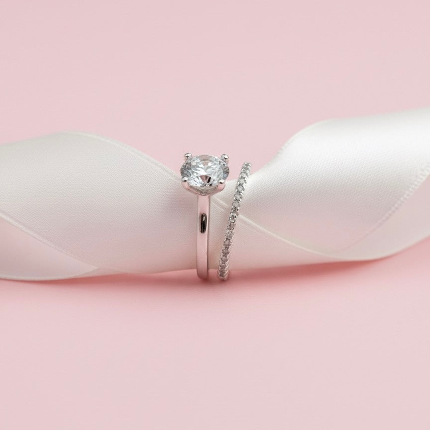 Un dúo de matrimonio que simboliza la unión eterna de dos almas. Cada anillo refleja amor, compromiso y la promesa de compartir una vida juntos. Un diseño elegante que perdurará tanto como su historia de amor.
