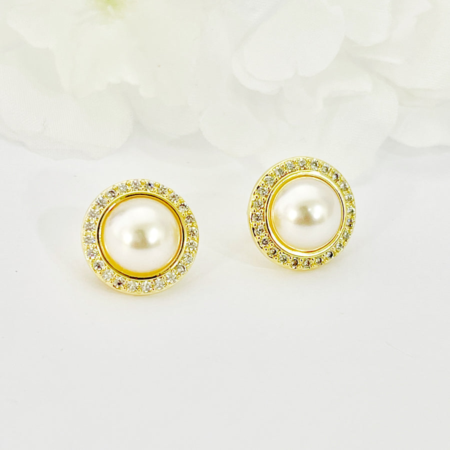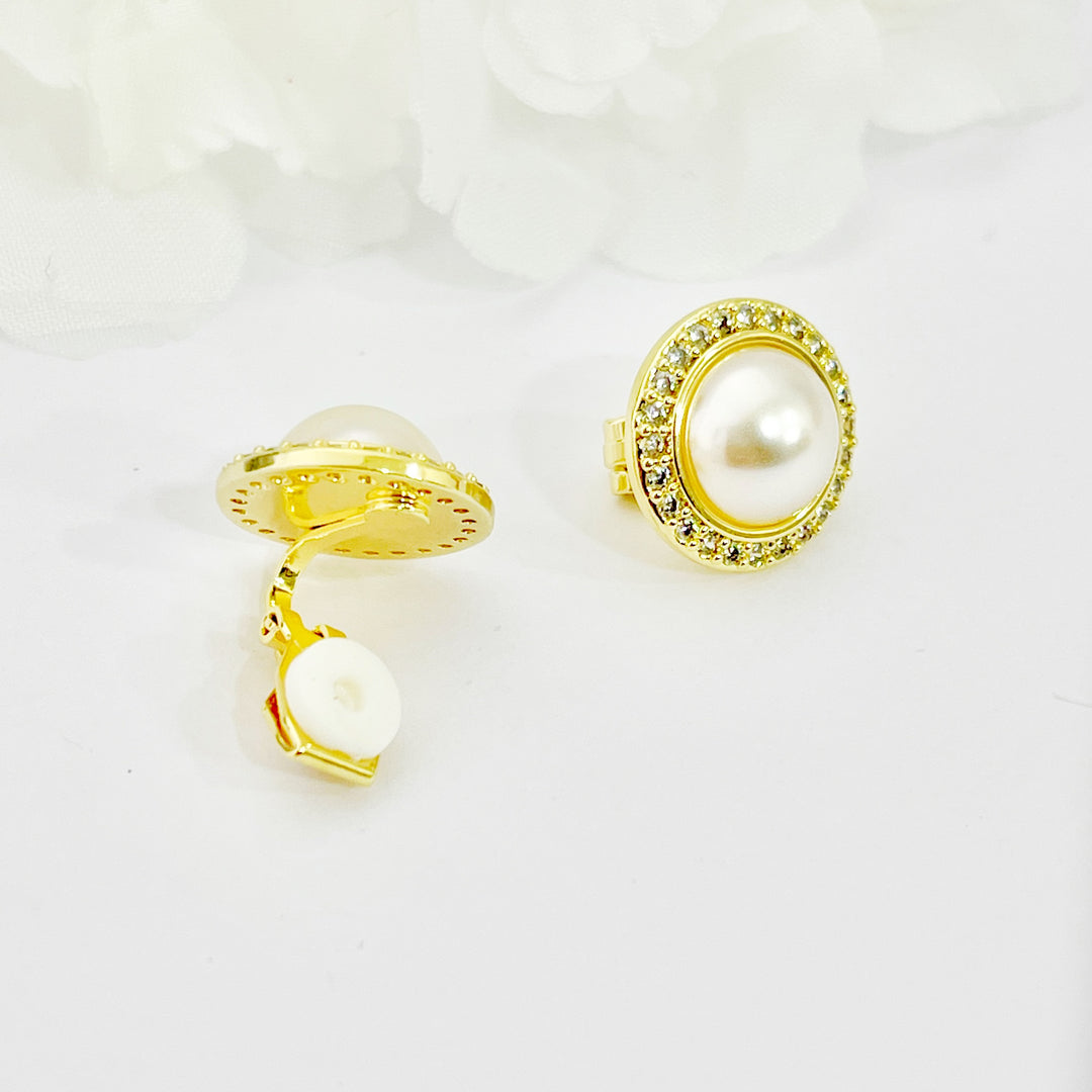 Aretes de Acero Prensa Dorada Perla Majestuosa