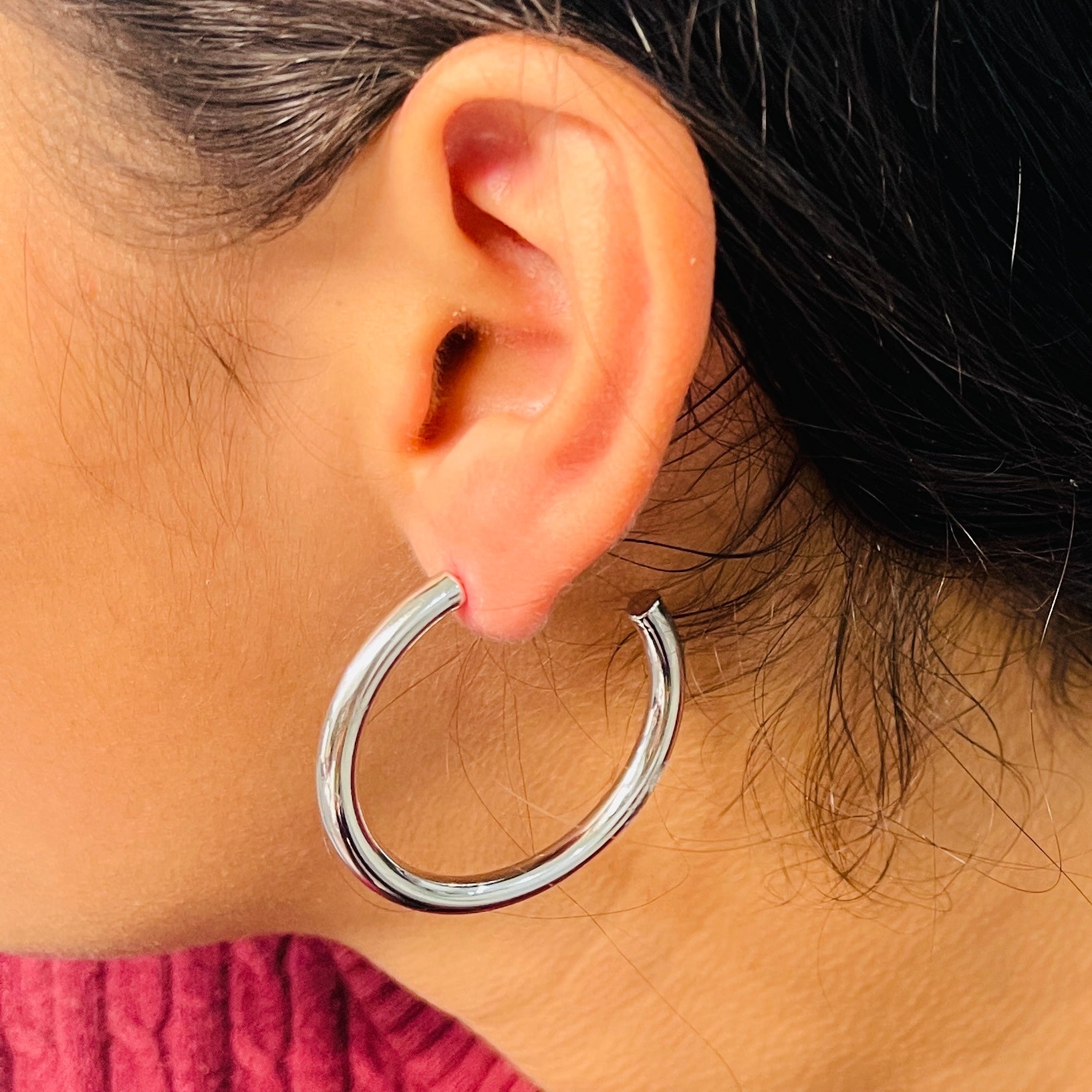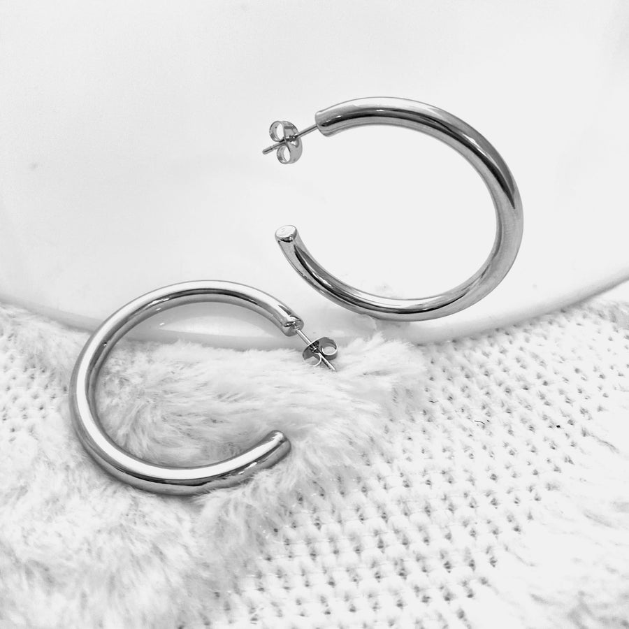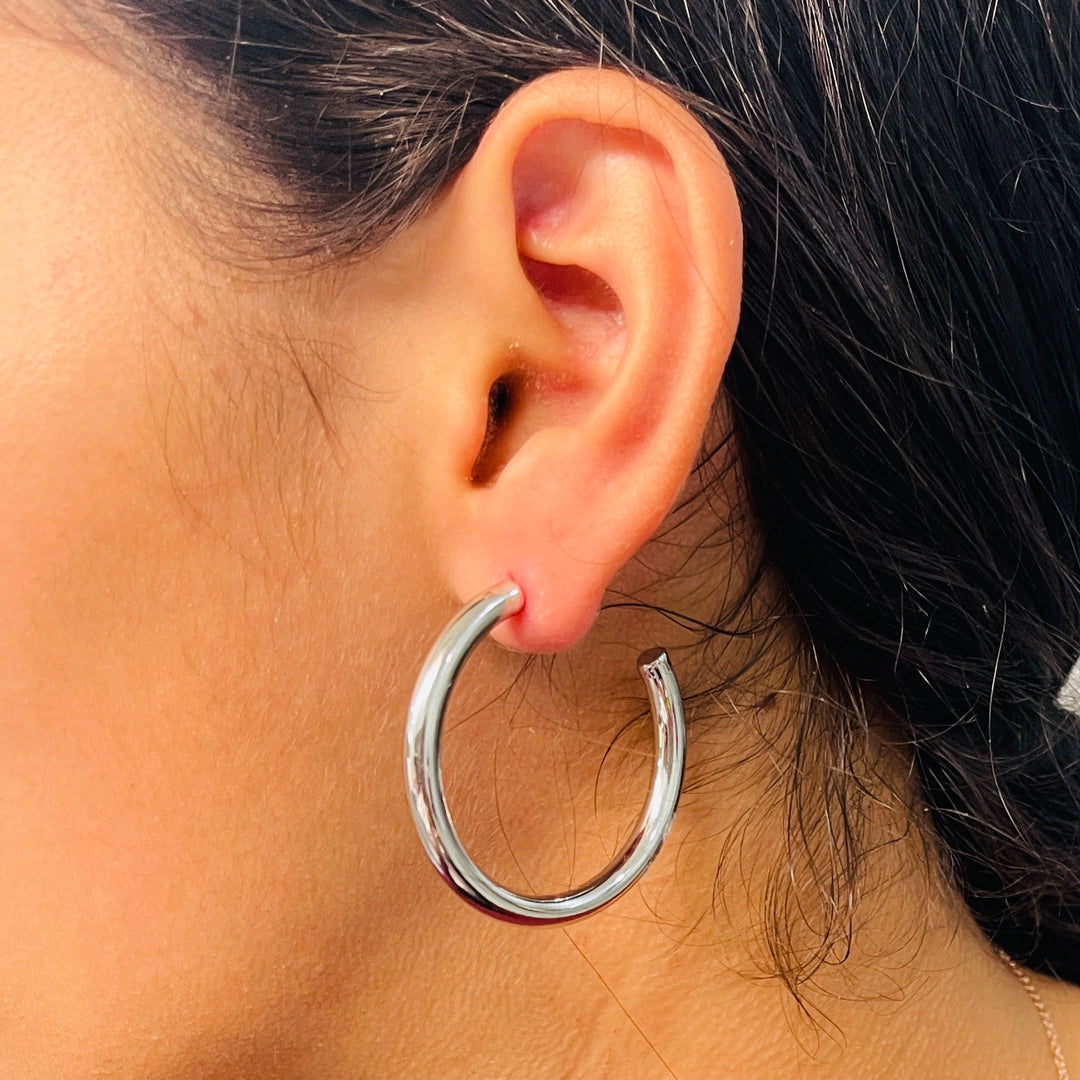 Aretes Acero Brillantes Plateado✨ 40 MM