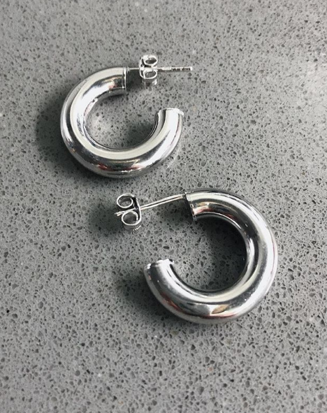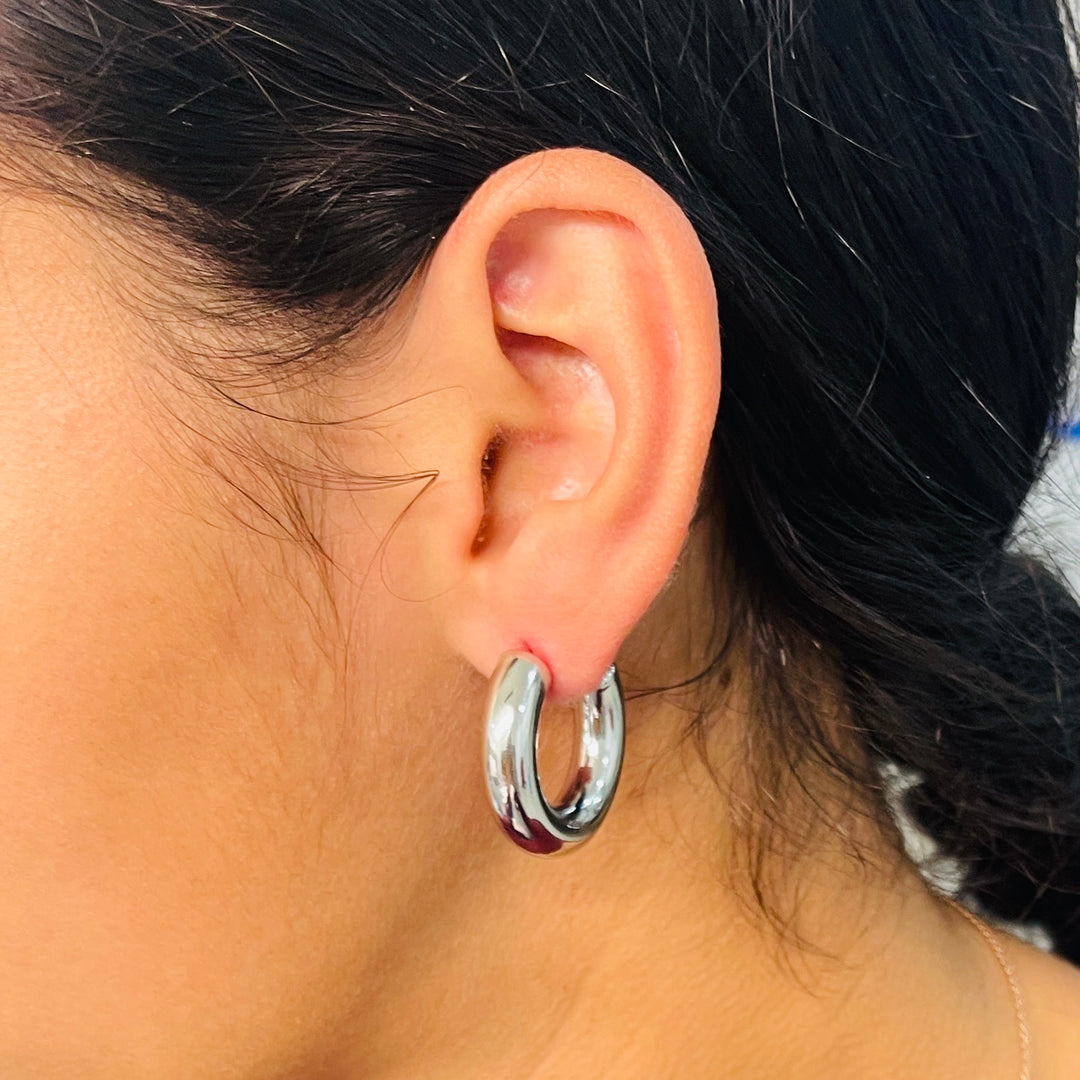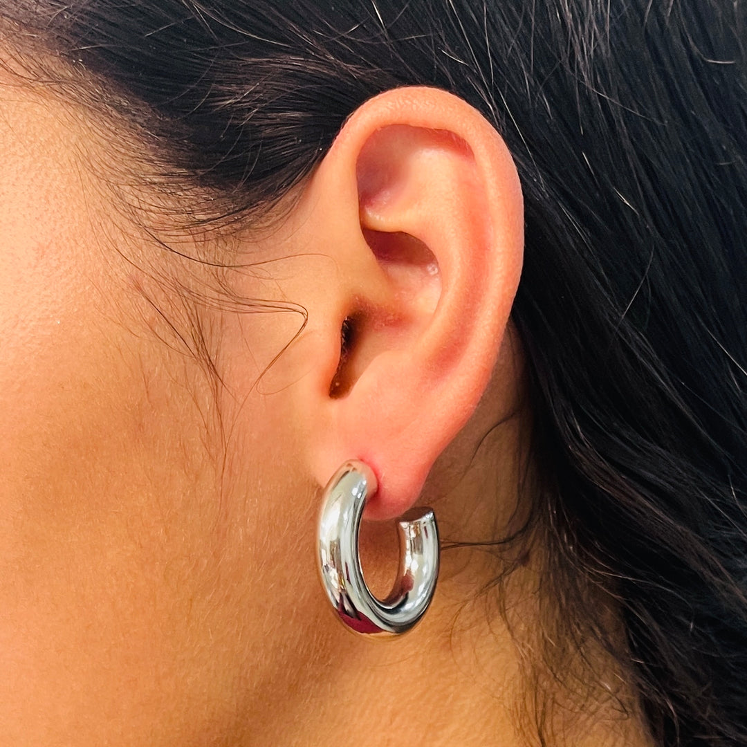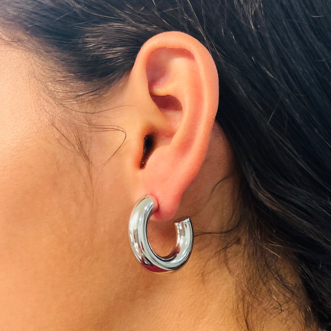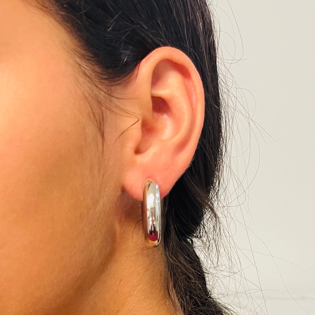 Aretes Acero Media Luna Plateada 30MM