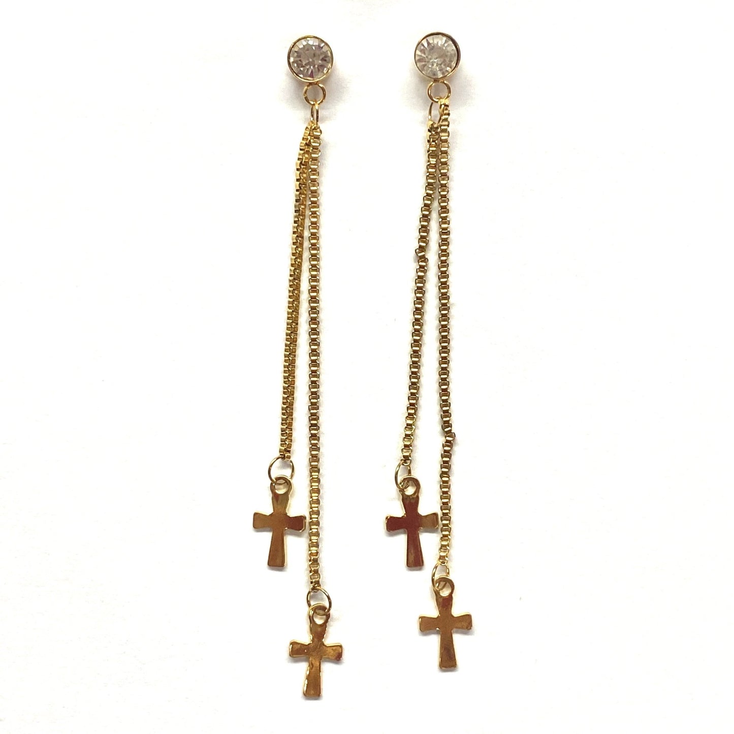 Aretes de acero inoxidable dorado con dijes de cruz