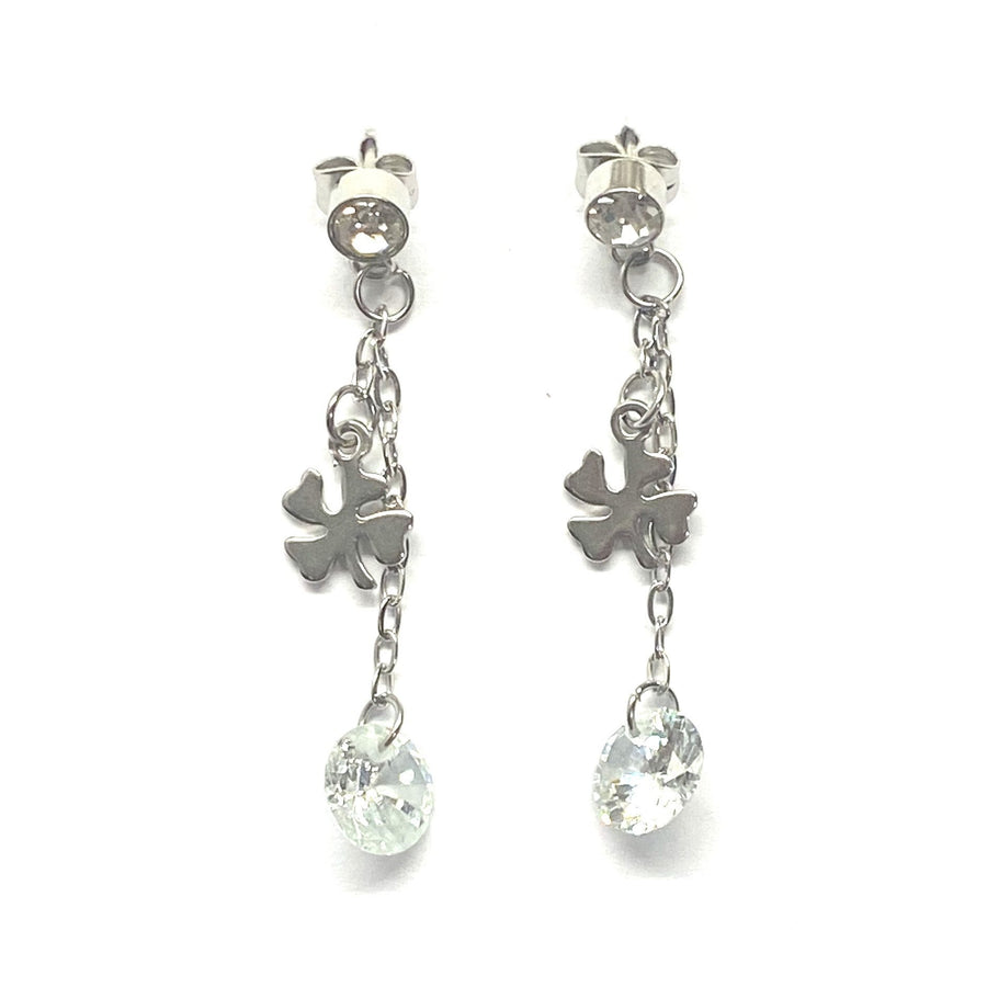 Aretes de acero inoxidable plateado con dijes trébol