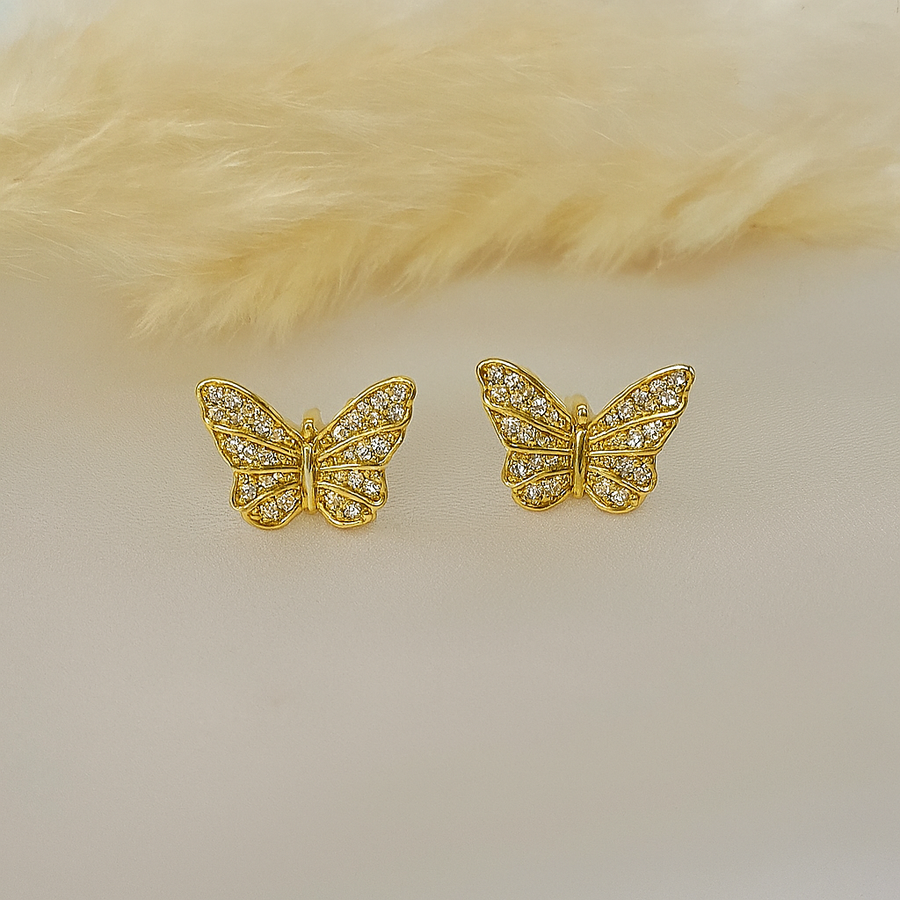 Aretes de Acero Dorado Reflejo de Mariposa🦋