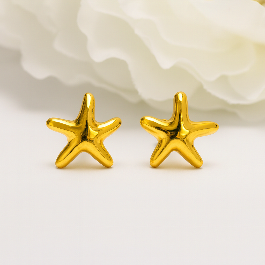 Aretes de acero inoxidable Estrella de Sol Dorada