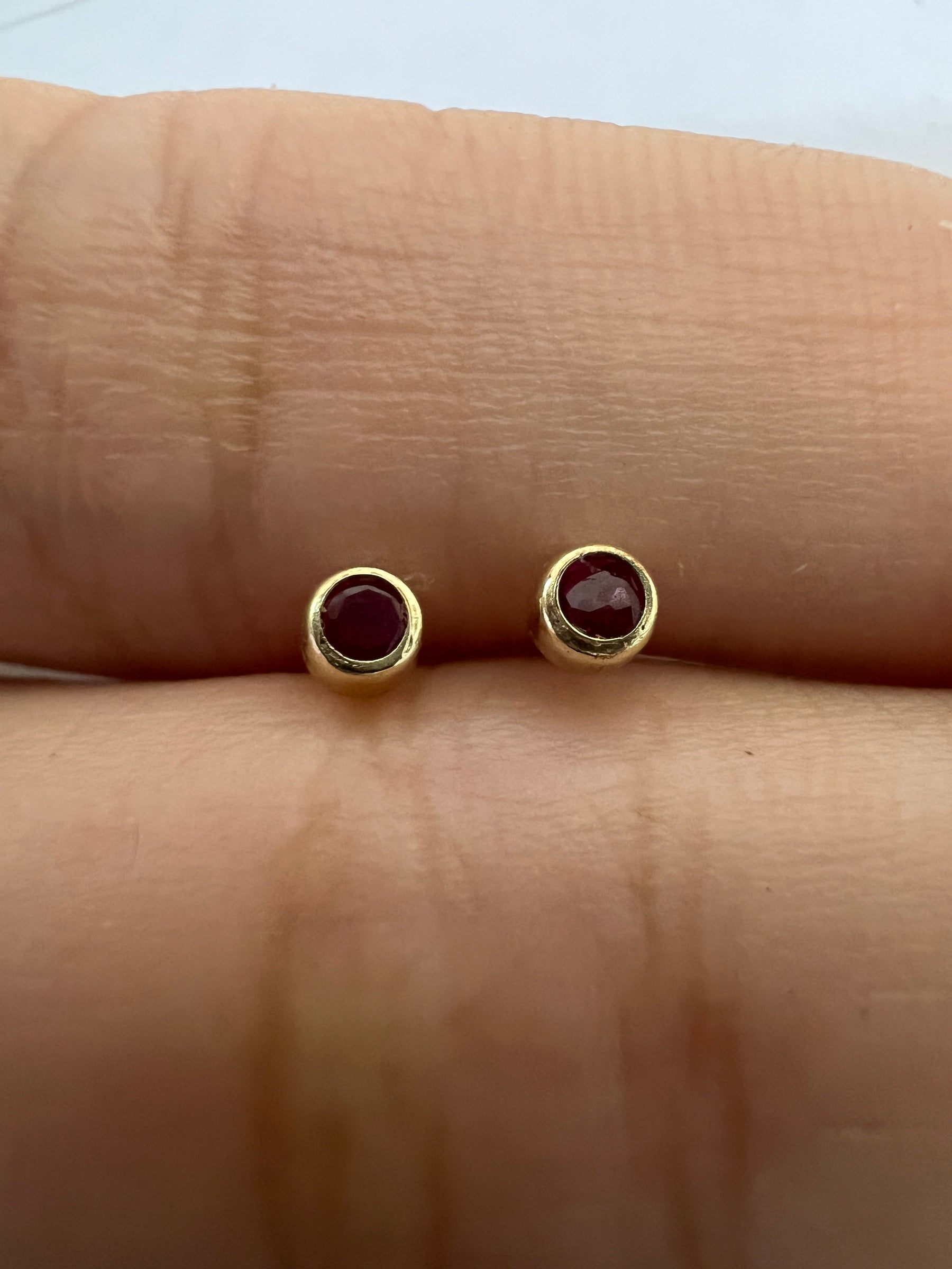 Aretes de Oro 10k Cilindro Rojo 2.5MM