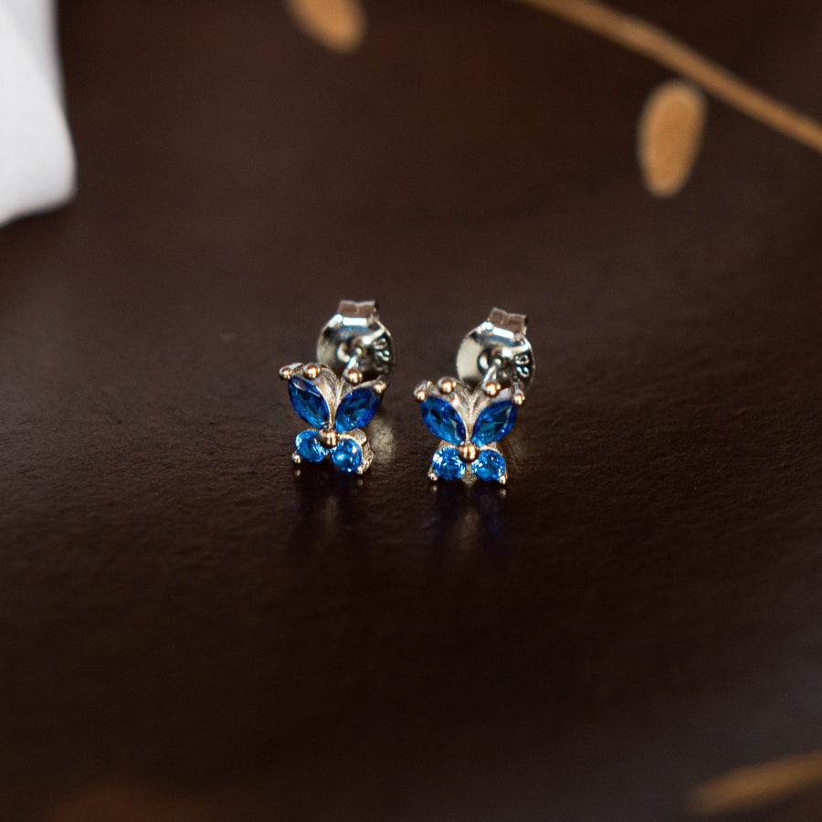 Aretes de plata 925 en forma de mariposa con zirconias cúbicas azules.
