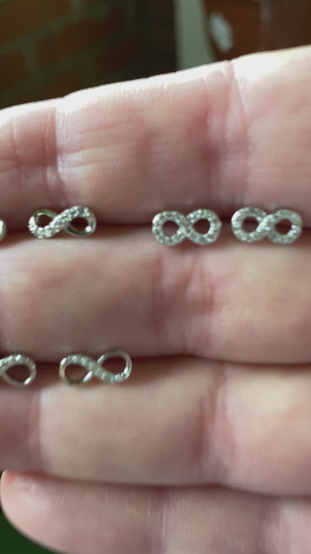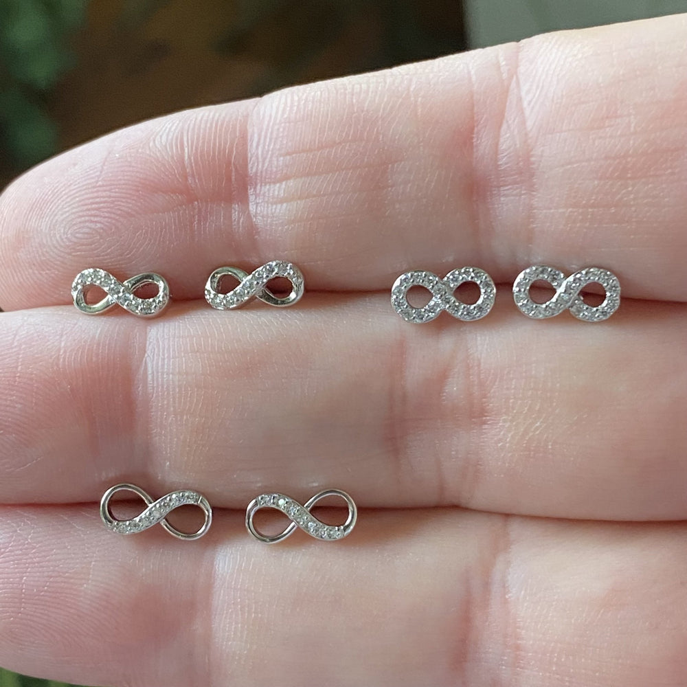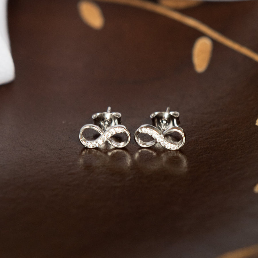 Aretes de plata 925 en forma de infinito con zirconias cúbicas blancas.