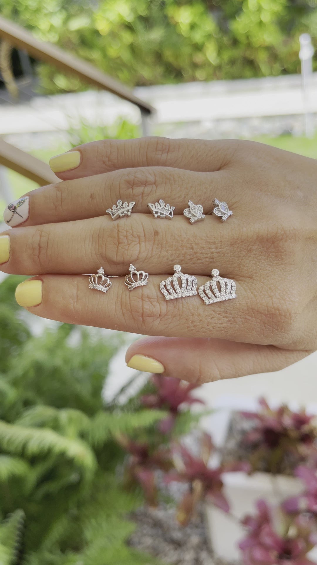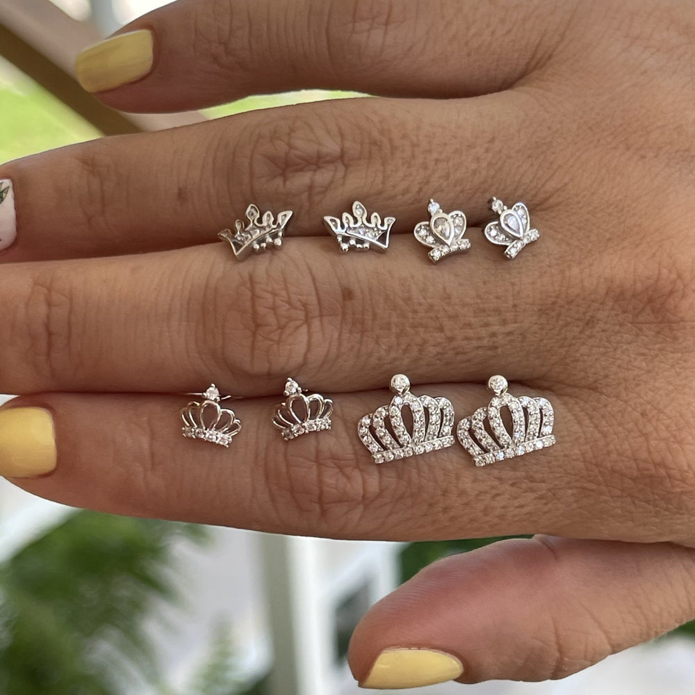 Aretes de plata 925 en forma de corona con zirconias cúbicas blancas.