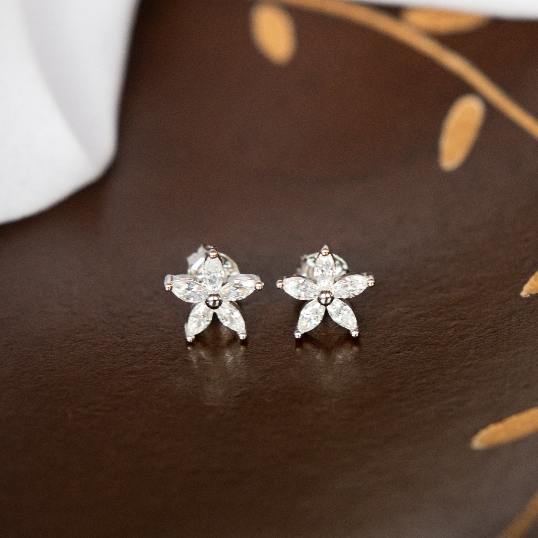 Aretes de plata 925 en forma de flor con zirconias cúbicas blancas.