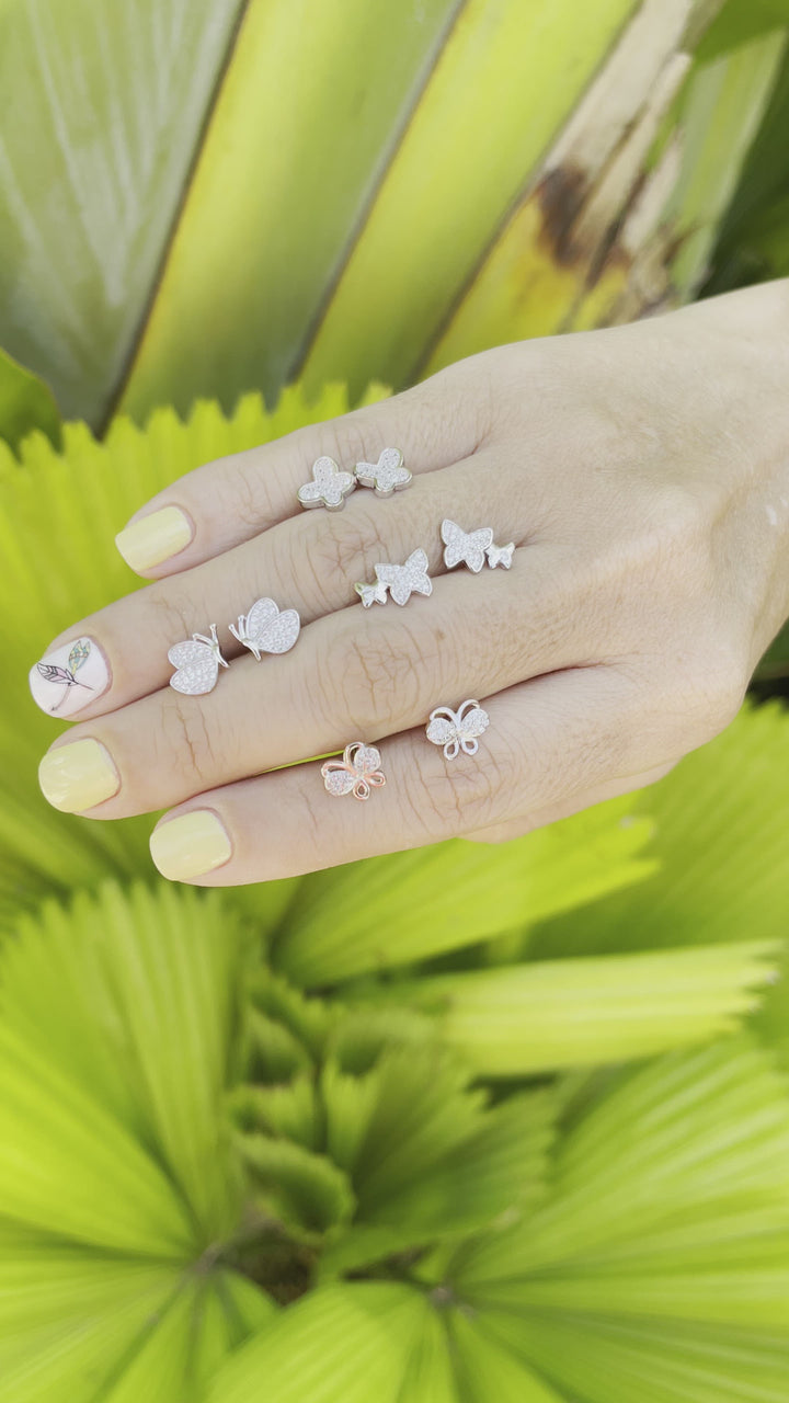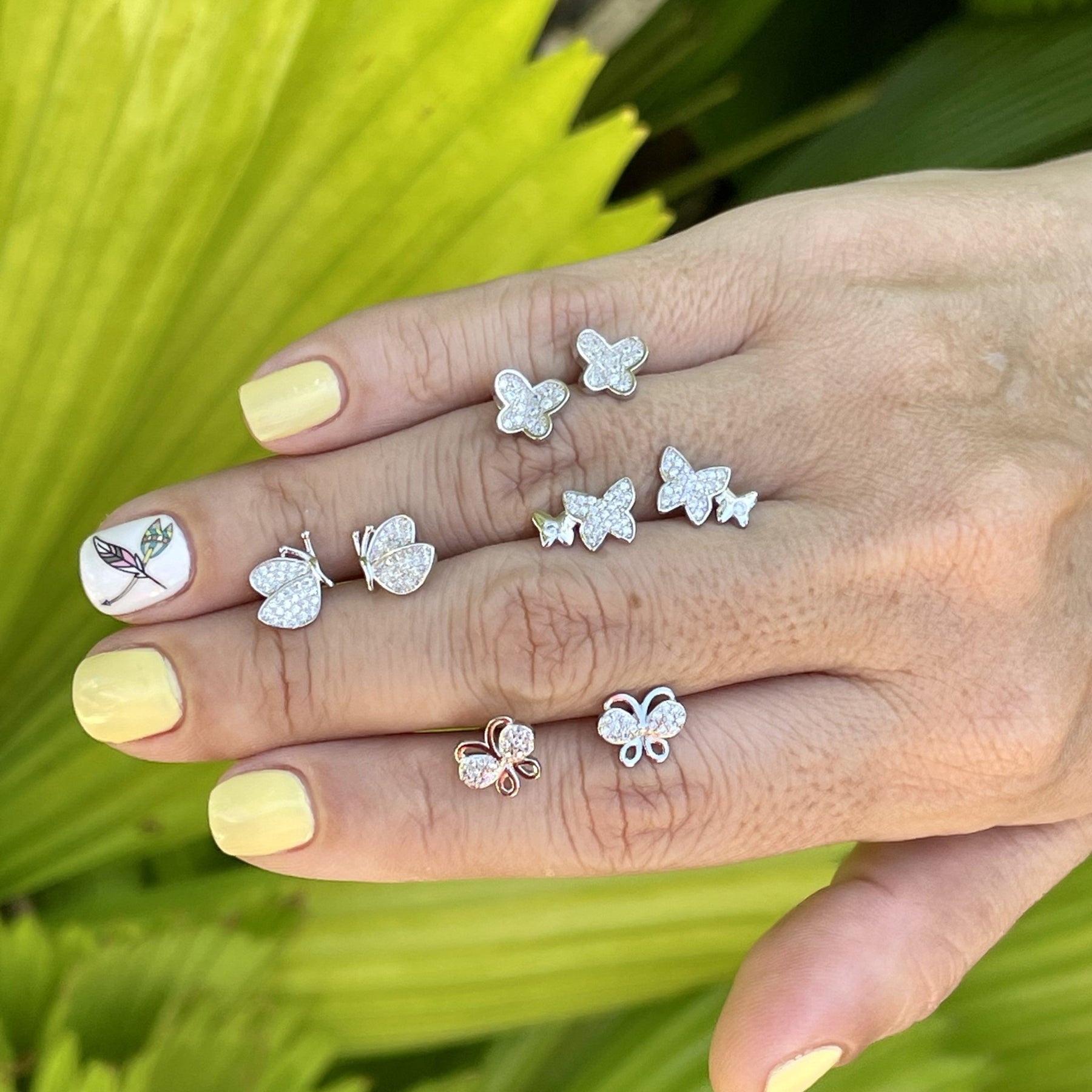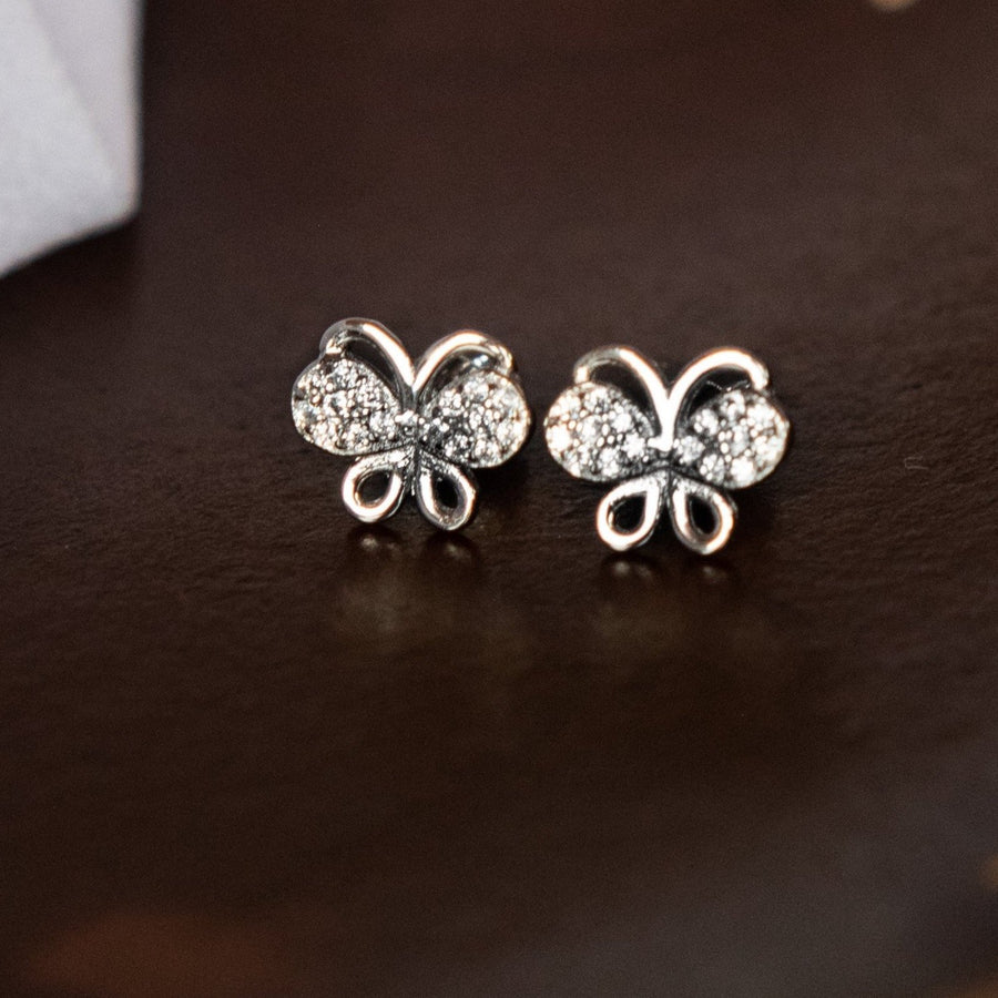 Aretes de plata 925 en forma de mariposa con zirconias cúbicas blancas.