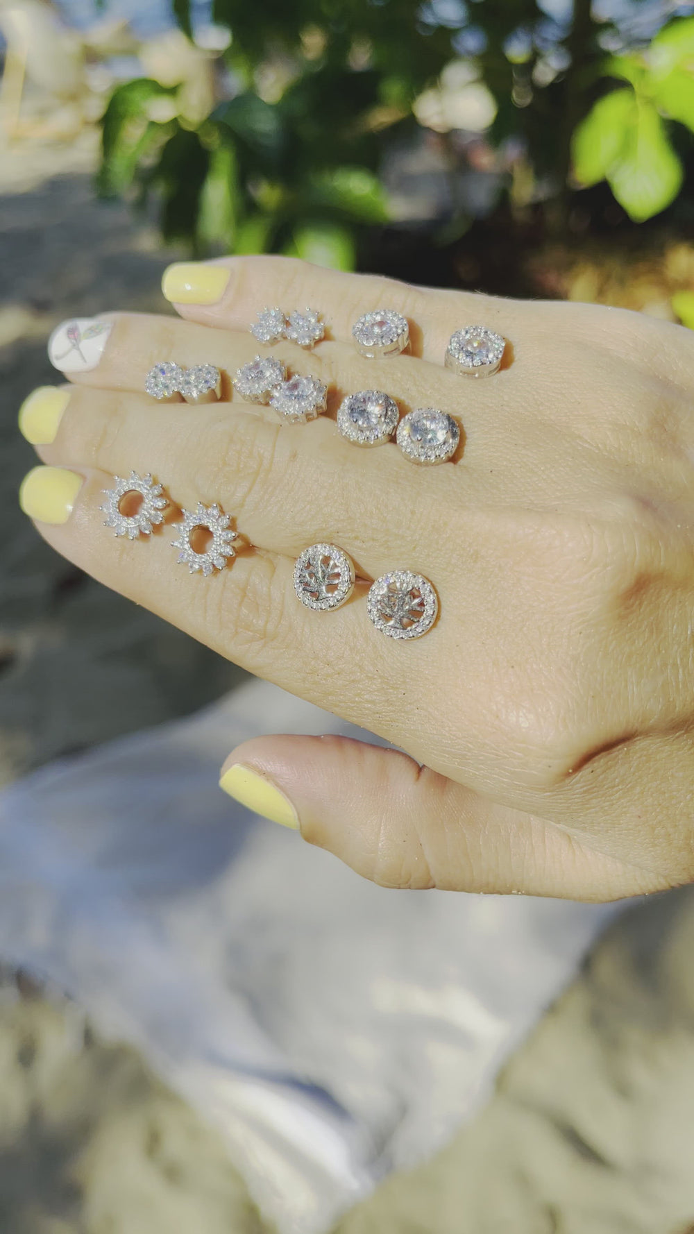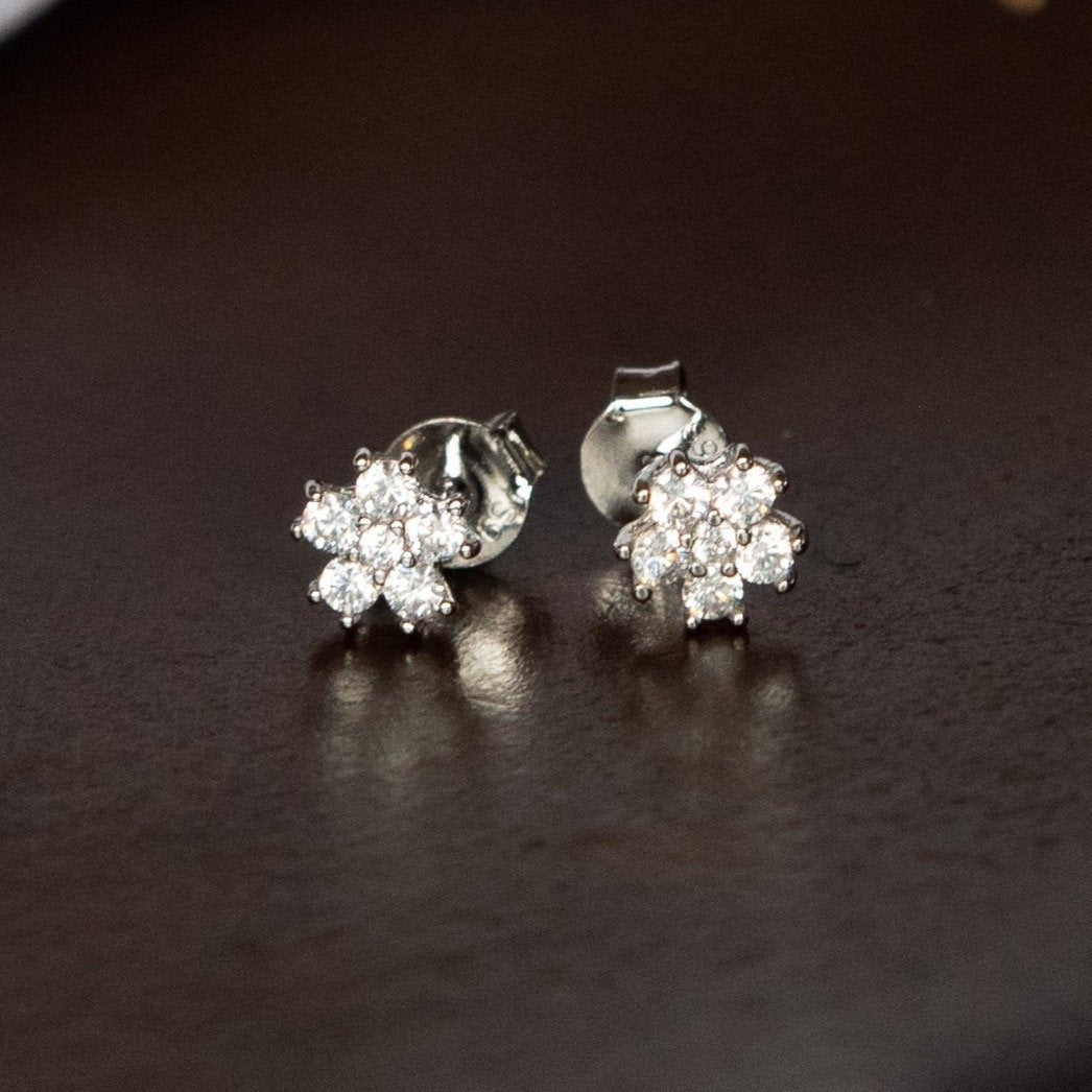 Aretes de plata 925 en forma de flor con zirconias cúbicas blancas.