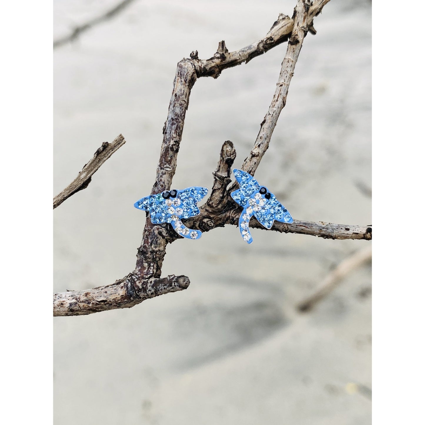 Aretes de Plata 925 con Cristales Swarovski celestes en forma de libélula.