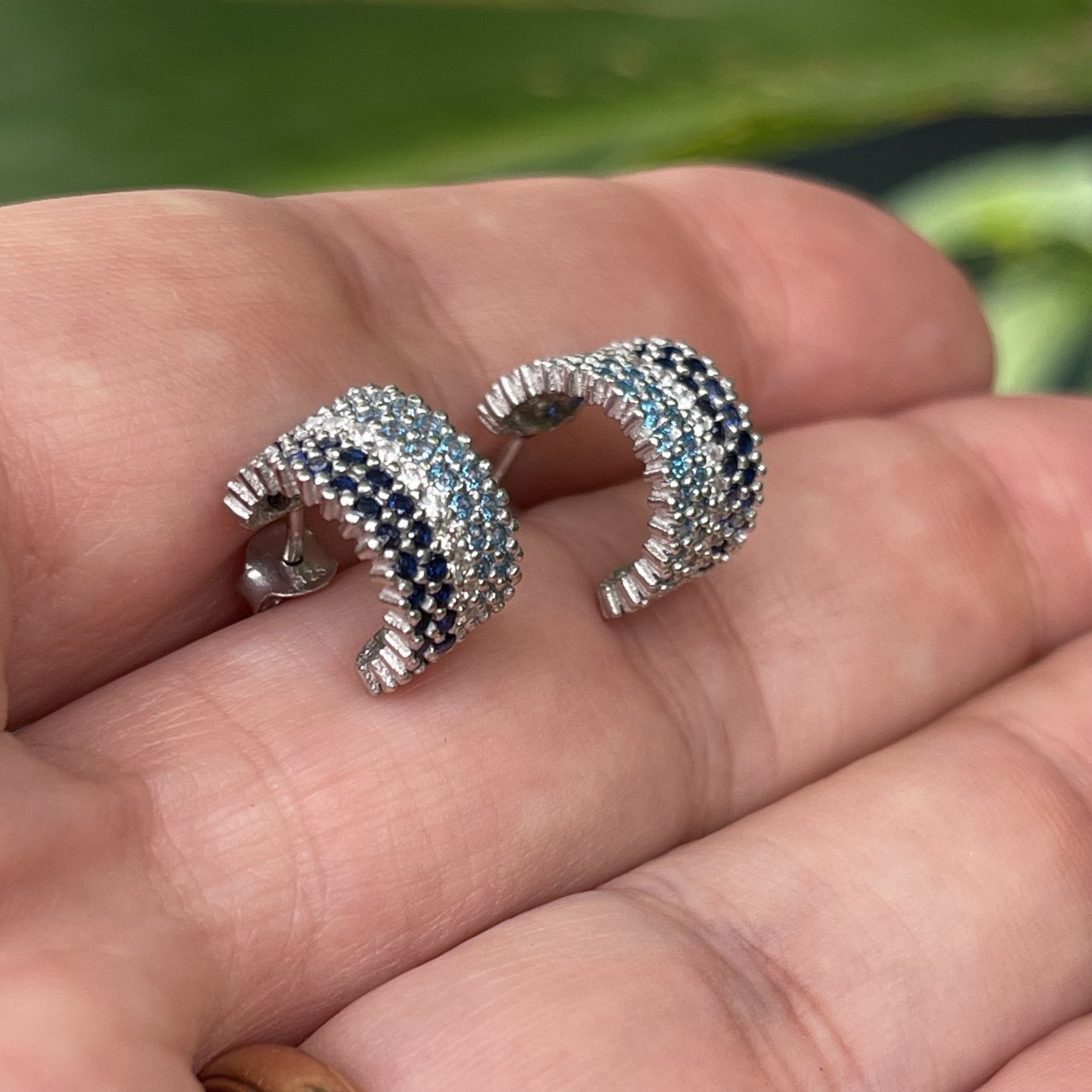 Aretes de plata 925 rodinados con zirconias cúbicas azules, celestes y blancas
