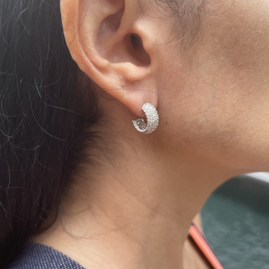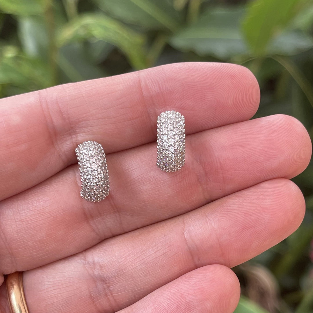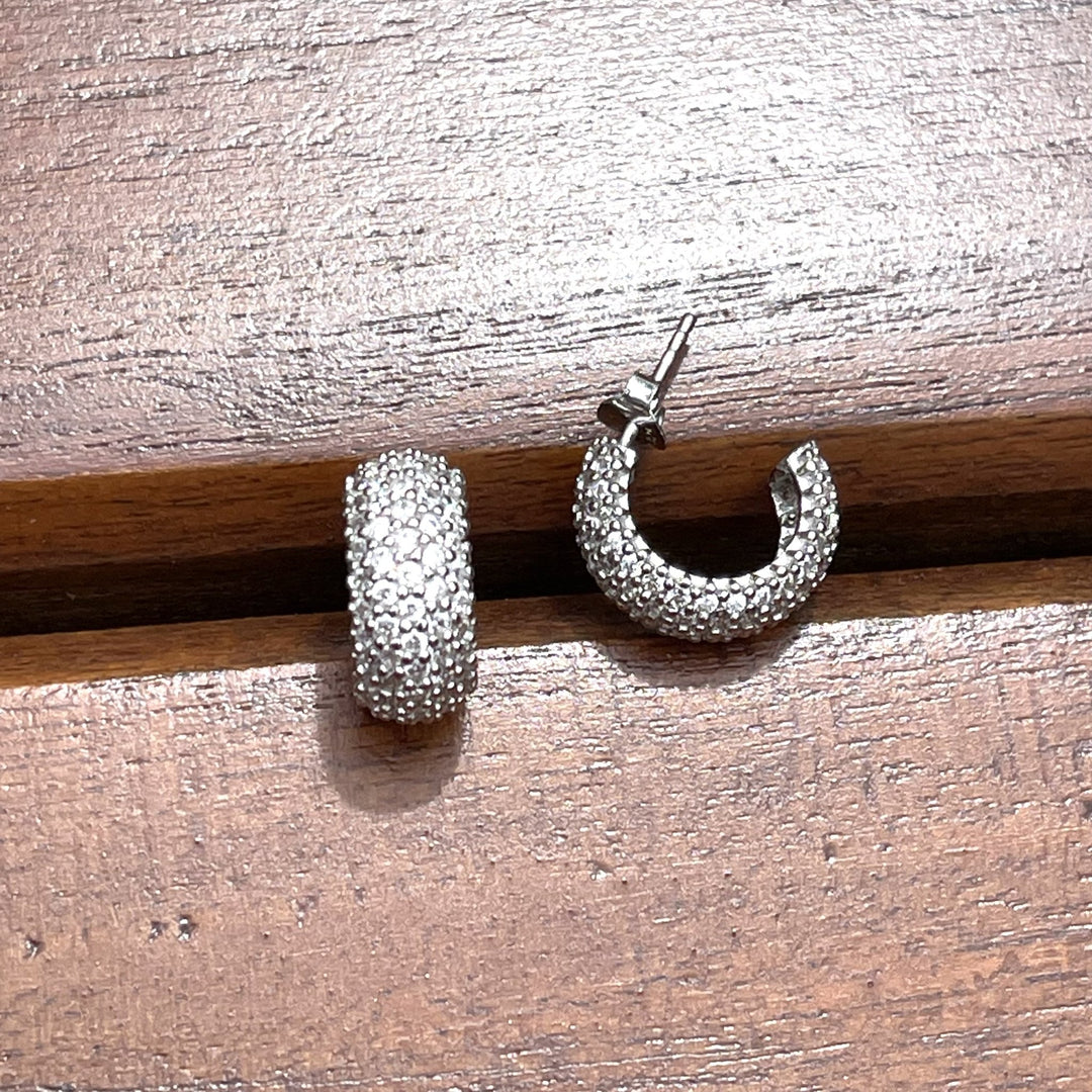 Aretes anchos de plata 925 rodinados con zirconias cúbicas blancas