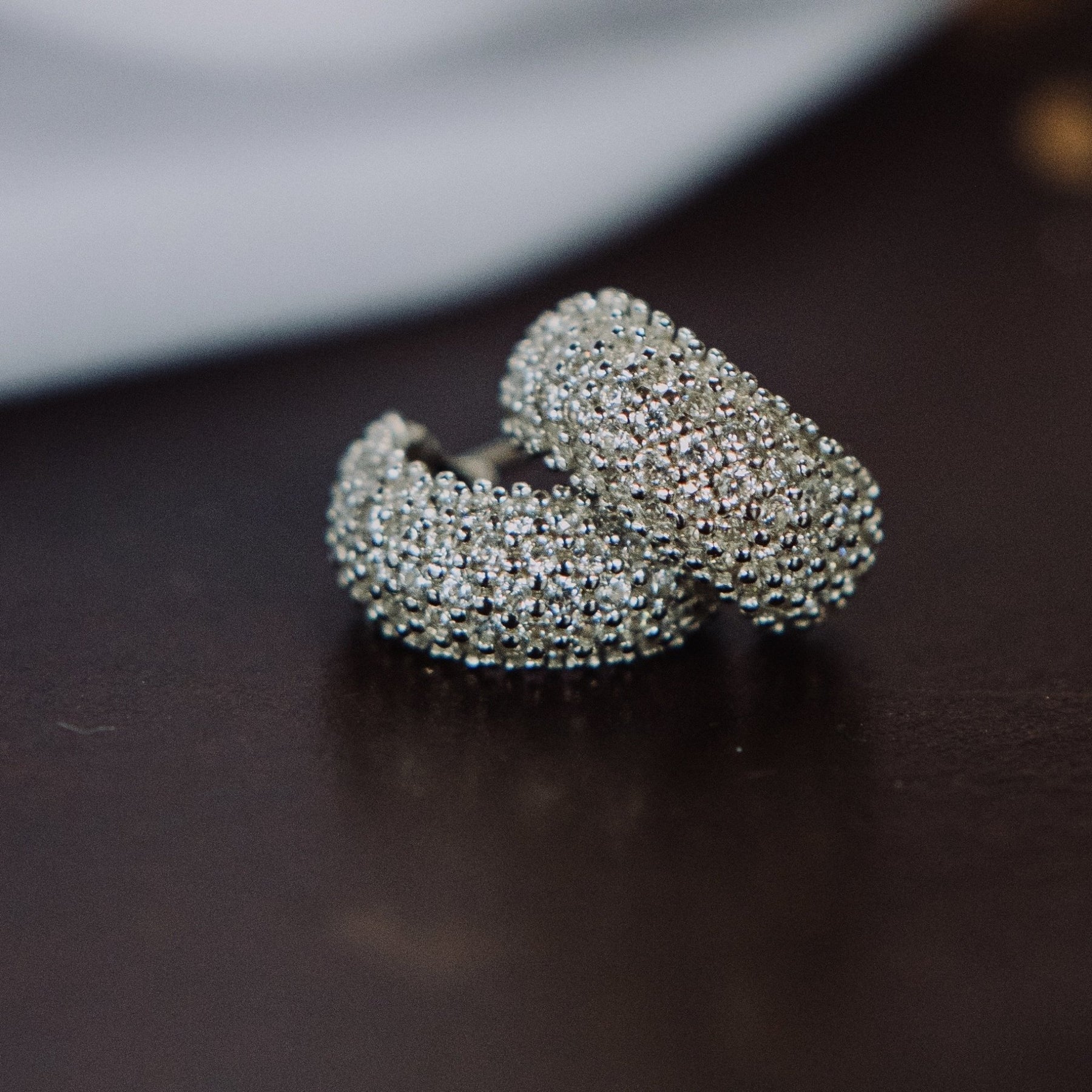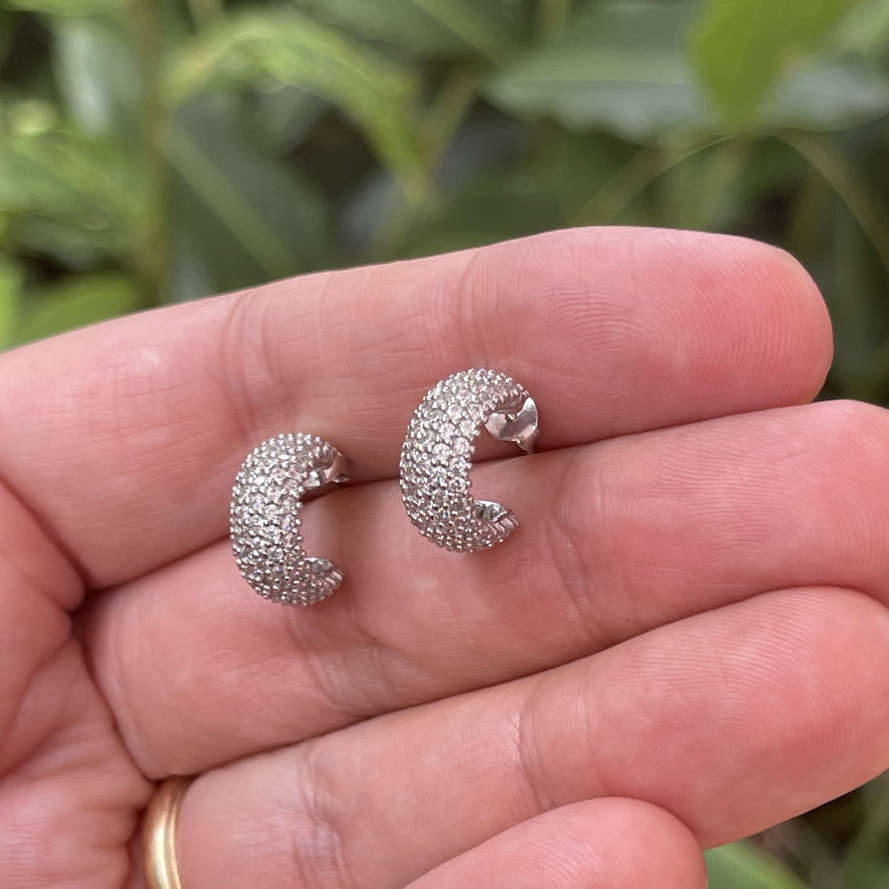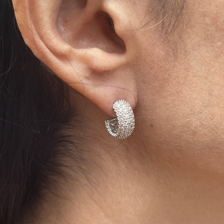 Aretes anchos de plata 925 rodinados con zirconias cúbicas blancas