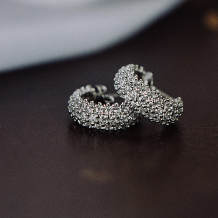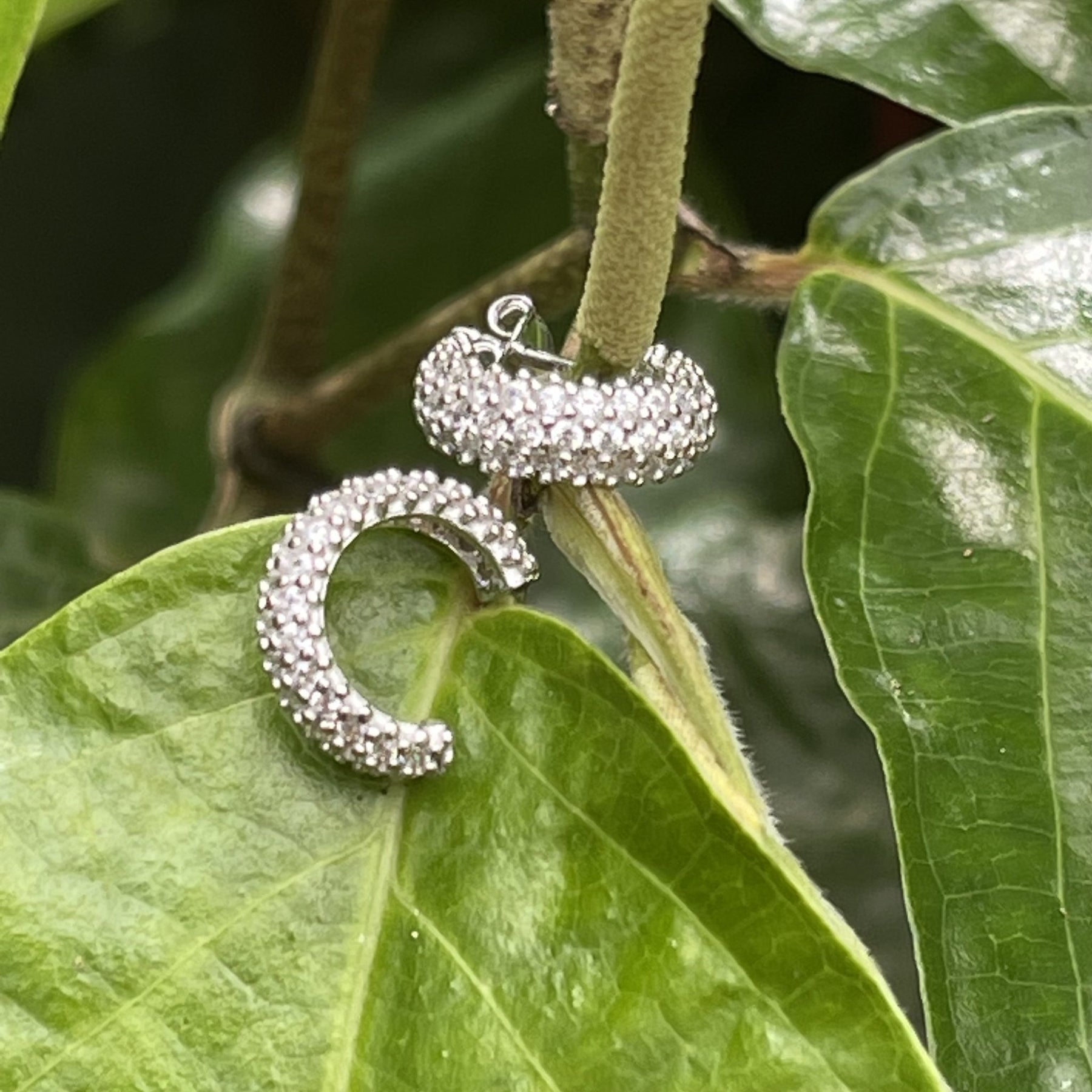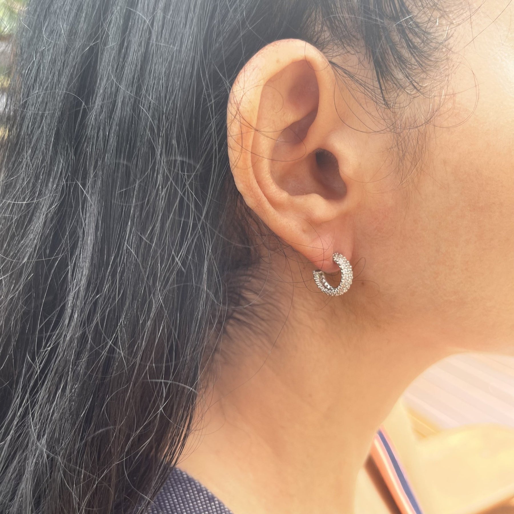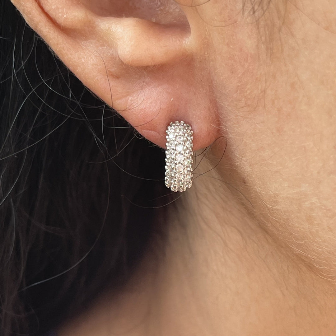 Aretes delgados de plata 925 rodinados con zirconias cúbicas blancas
