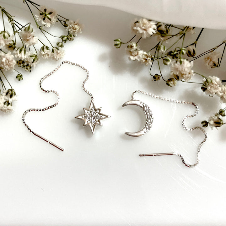 Aretes de Plata Estrella y Luna | Nicola Joyería