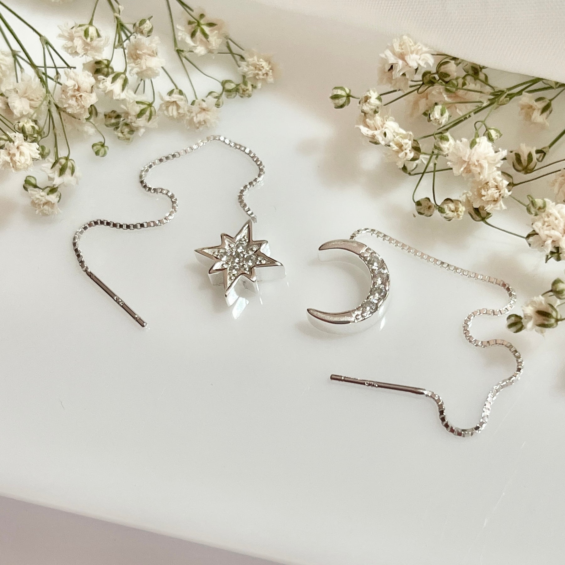 Aretes de Plata Estrella y Luna | Nicola Joyería en Costa Rica