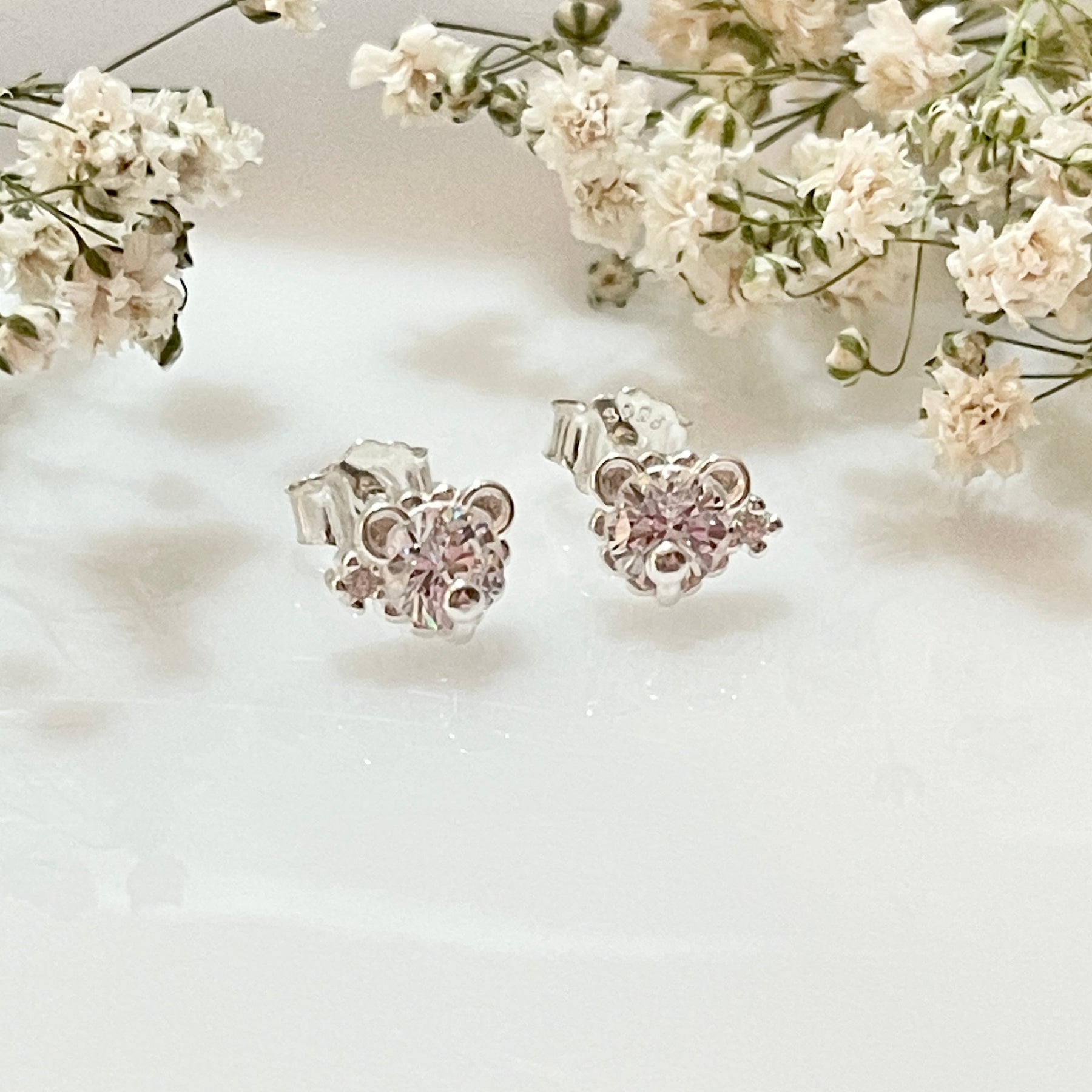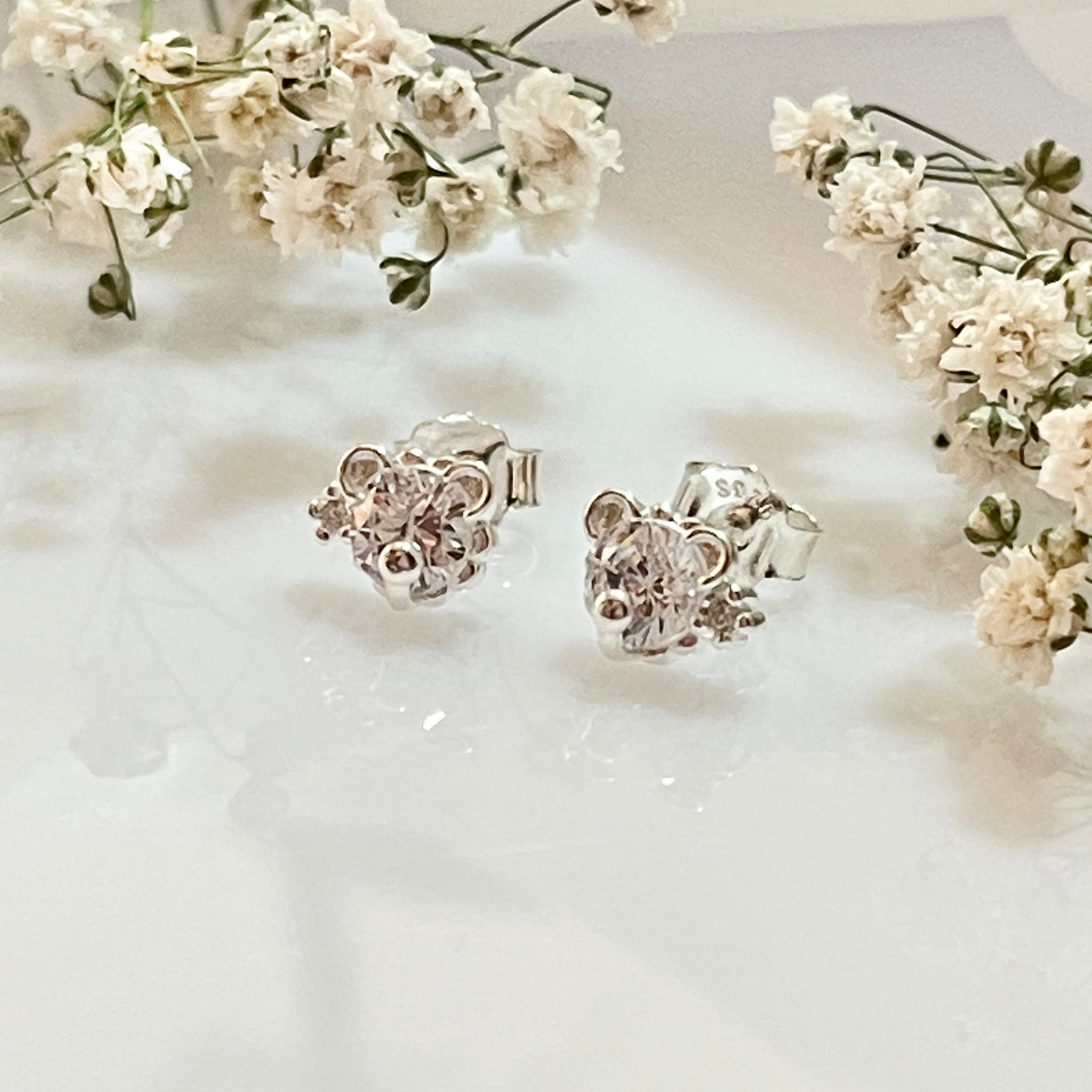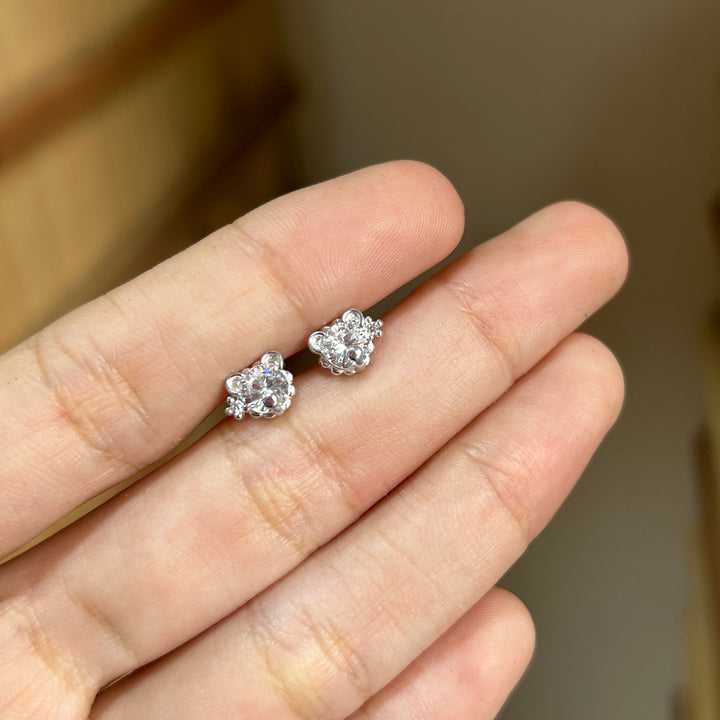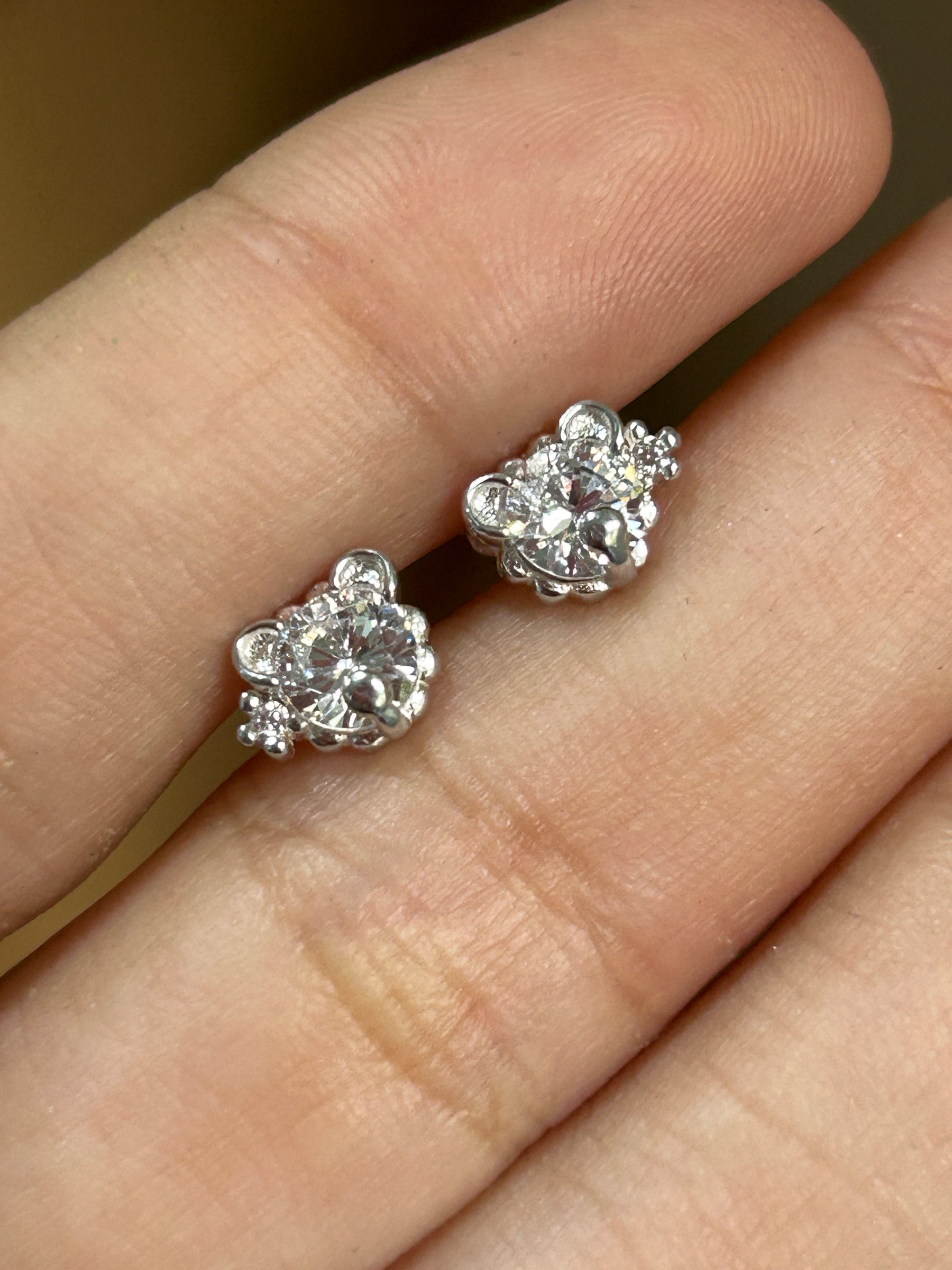 Aretes de Plata Oso Circonitas Blancas 6MM | Nicola joyería en Costa Rica