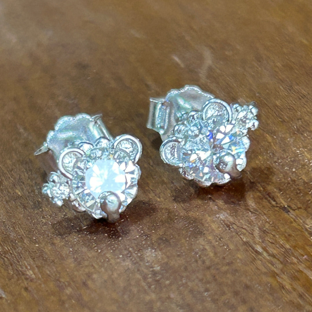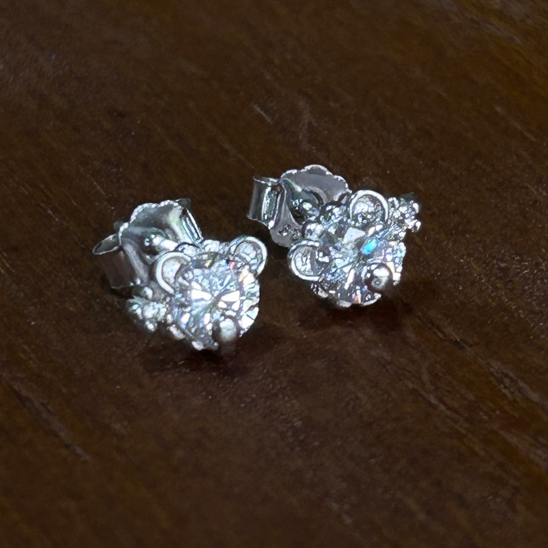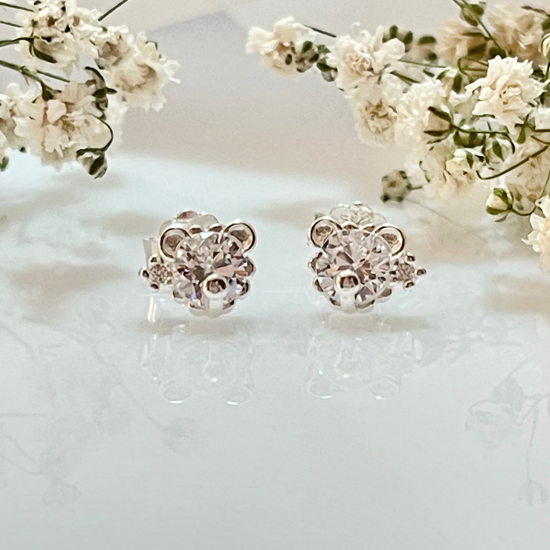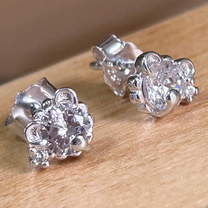 Aretes de Plata Oso Circonitas Blancas 6MM | Nicola joyería en Costa Rica