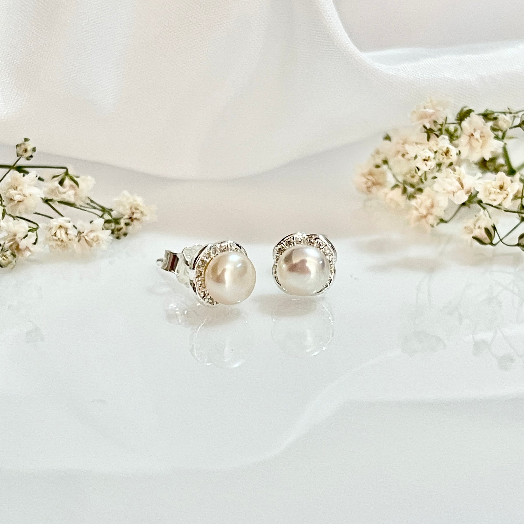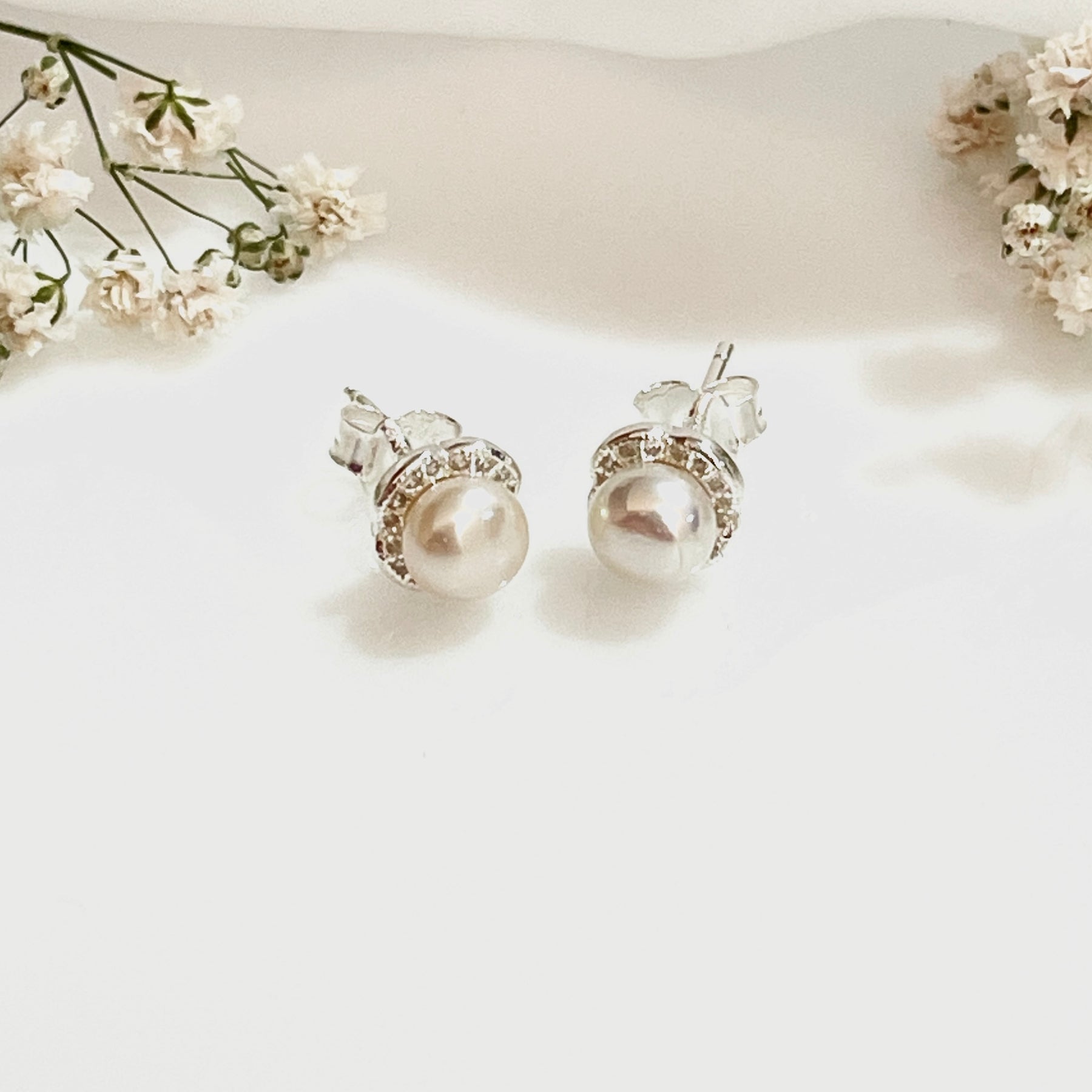 Aretes de Plata con Perla Cultivada 8MM | Plata 925 en Costa Rica