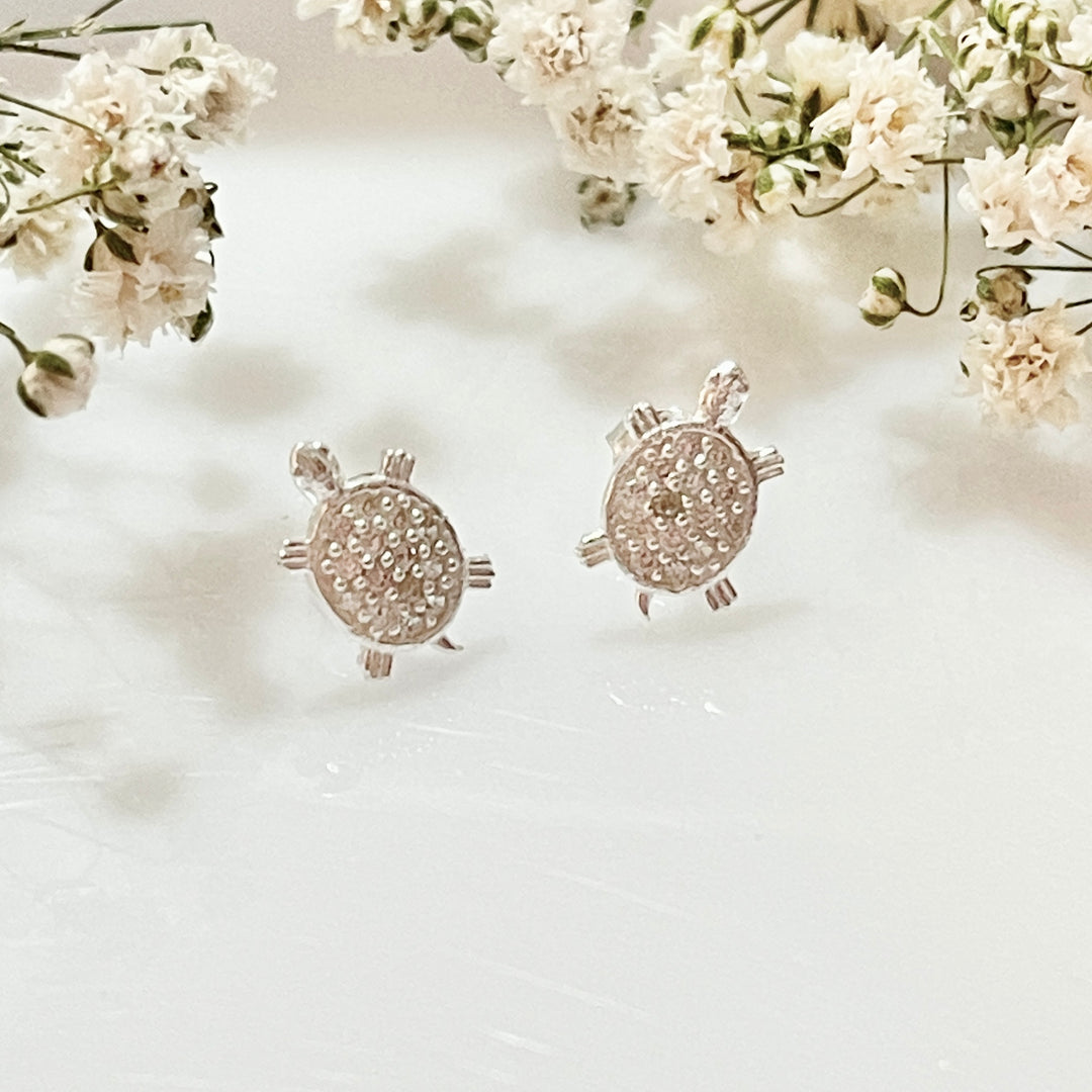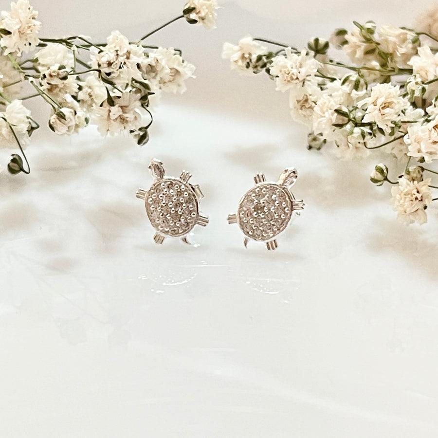 Aretes de Plata Tortuga Circonitas Blancas 6,6MM | Nicola Joyería