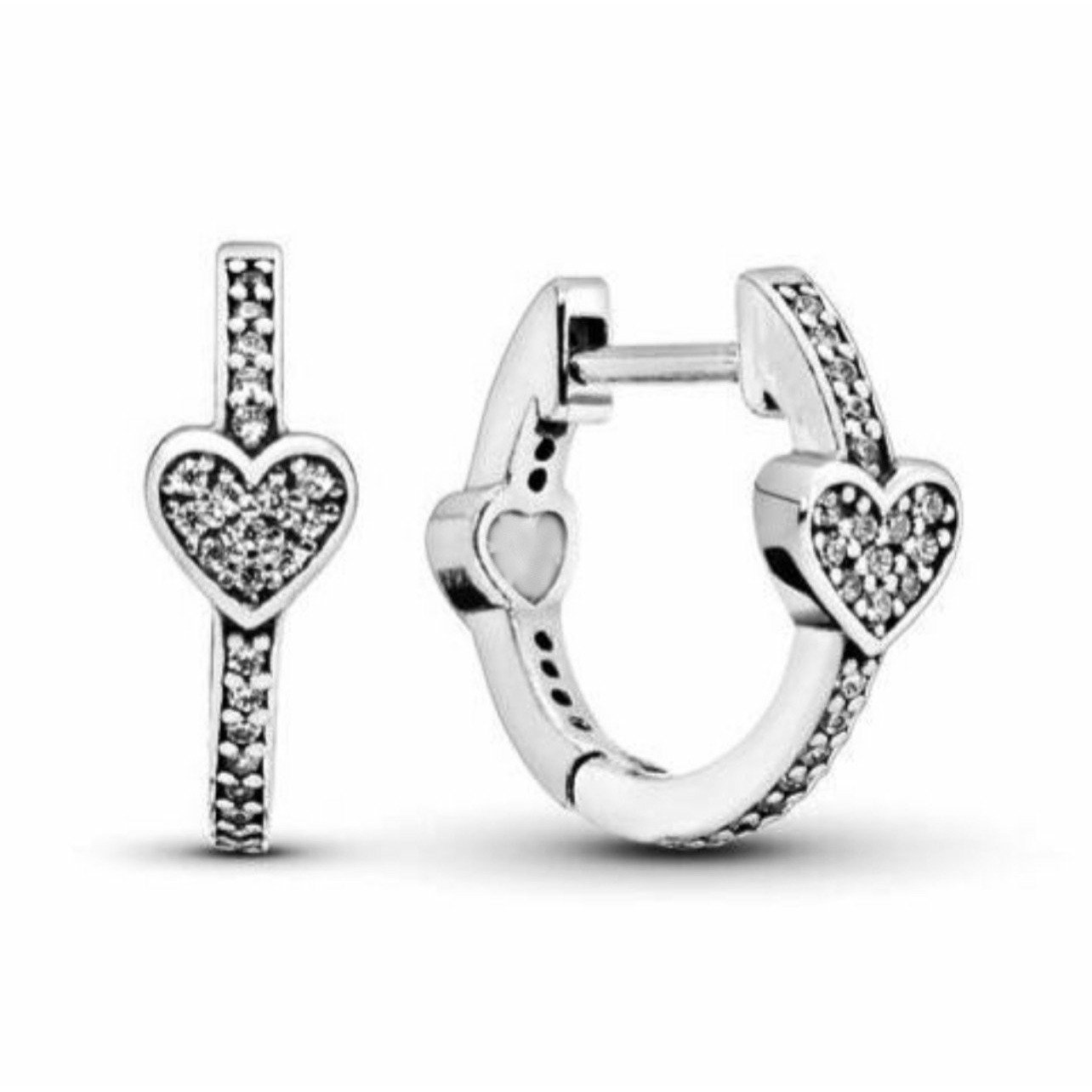 Estas argollas de plata de ley con hermosos corazones y detalles brillantes son sofisticados y expresivos.