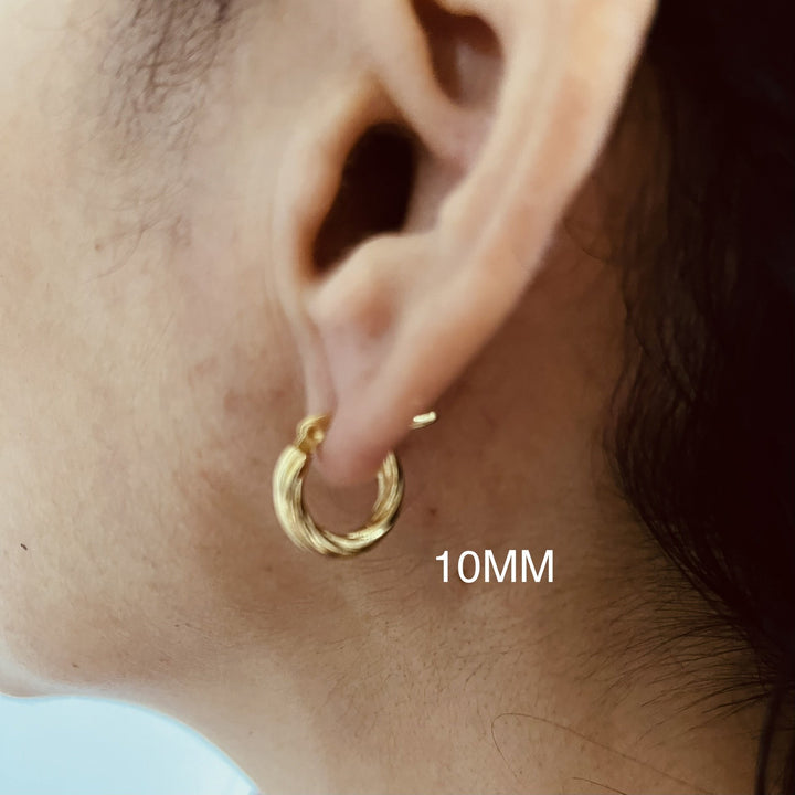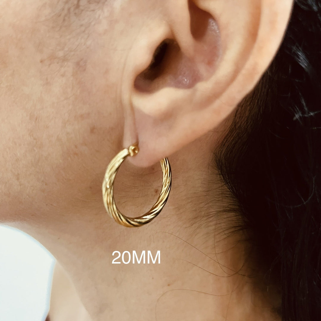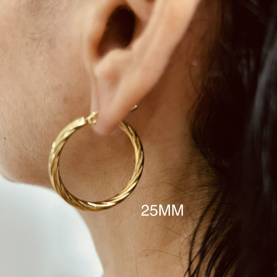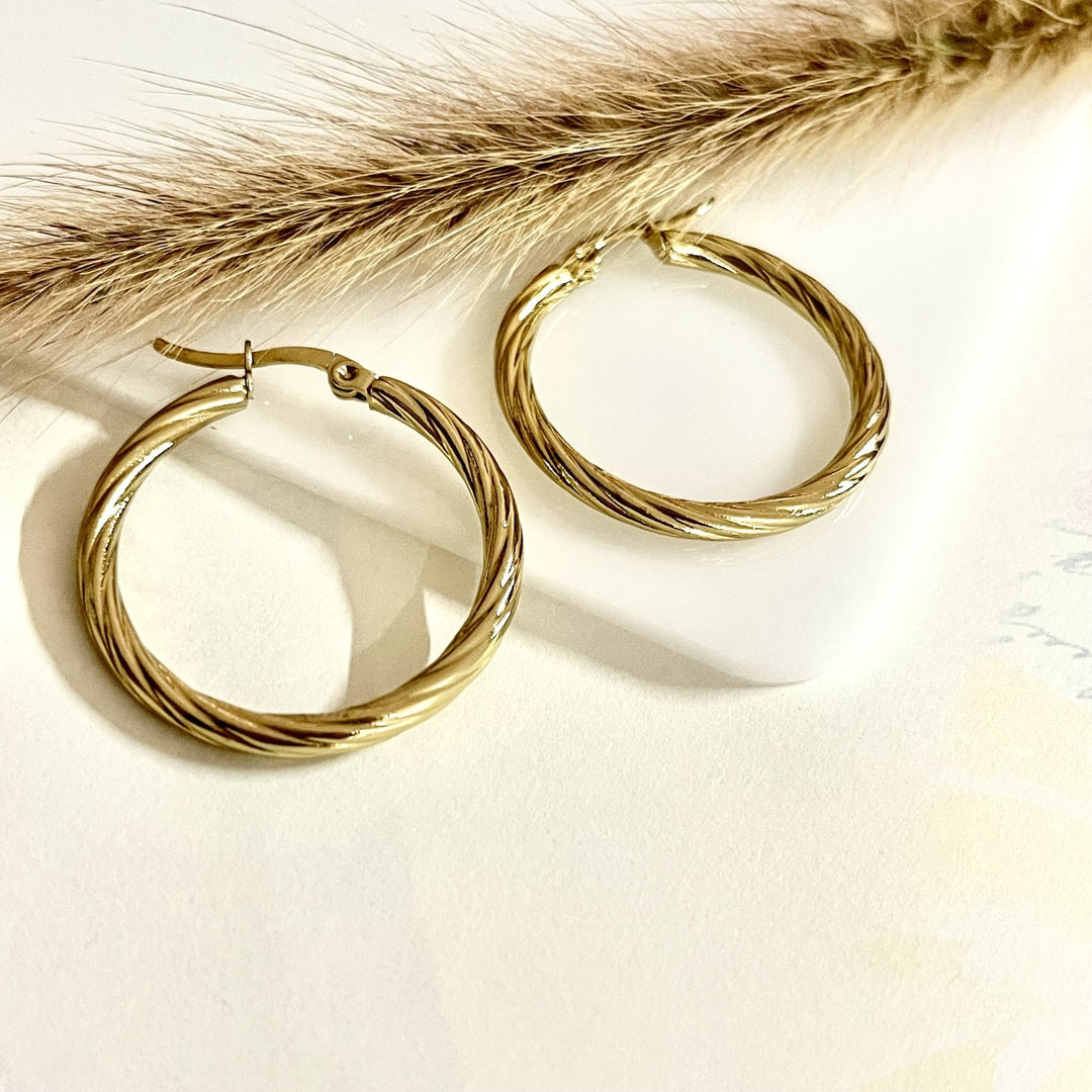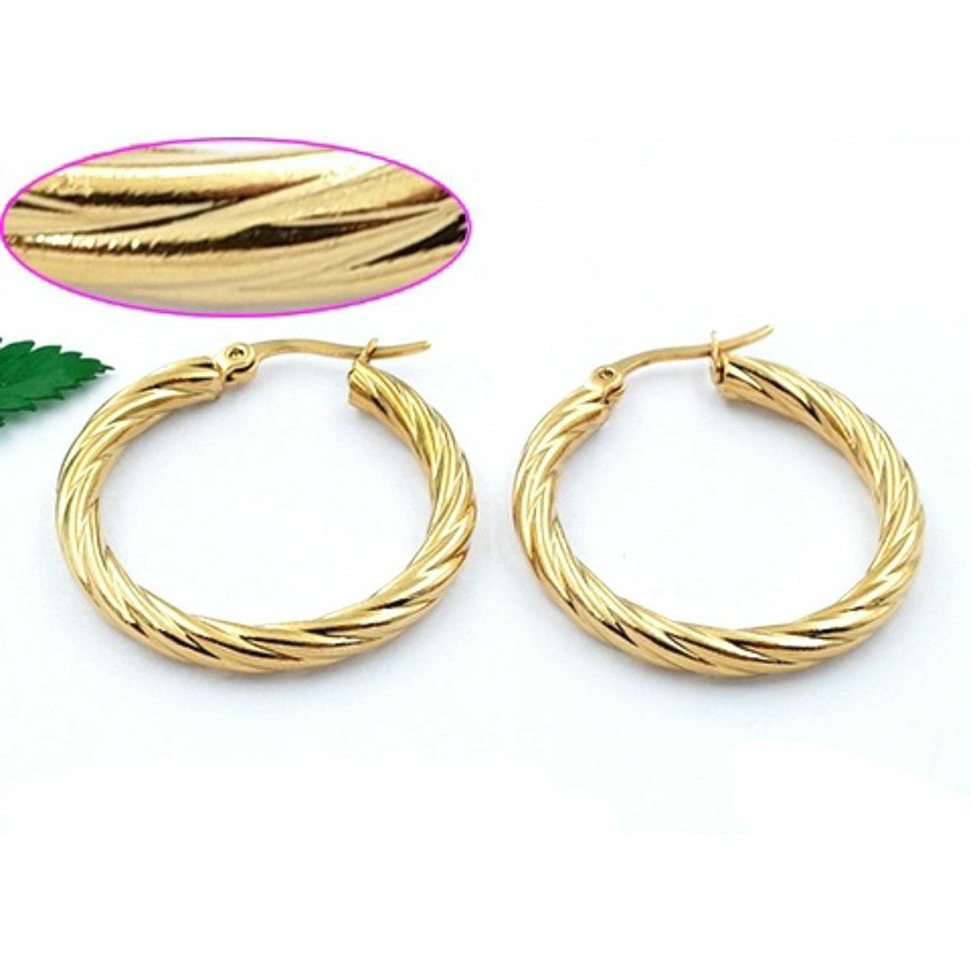 Aretes tipo argollas de acero inoxidable dorado en con cierre tipo puente.