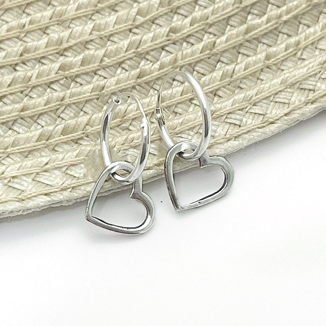 Demuéstrale a esa persona especial lo mucho que te importa con este precioso par de Argollas Colgantes Corazones Huecos.