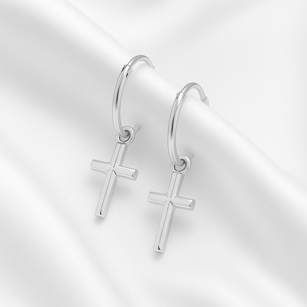Compra online unas argollas pequeñas de plata con cruces colgantes en Nicola Joyería  ✔️ Envío en 48 horas ✔️ Alta Calidad ✔️ Costa Rica 🇨🇷