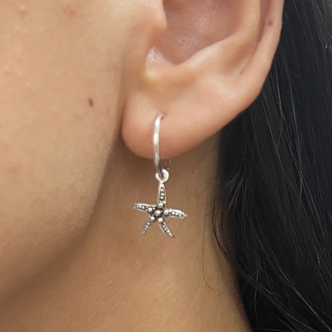 Navega hacia el mar y la aventura con estas exclusivas argollas colgantes con forma de estrella de mar.