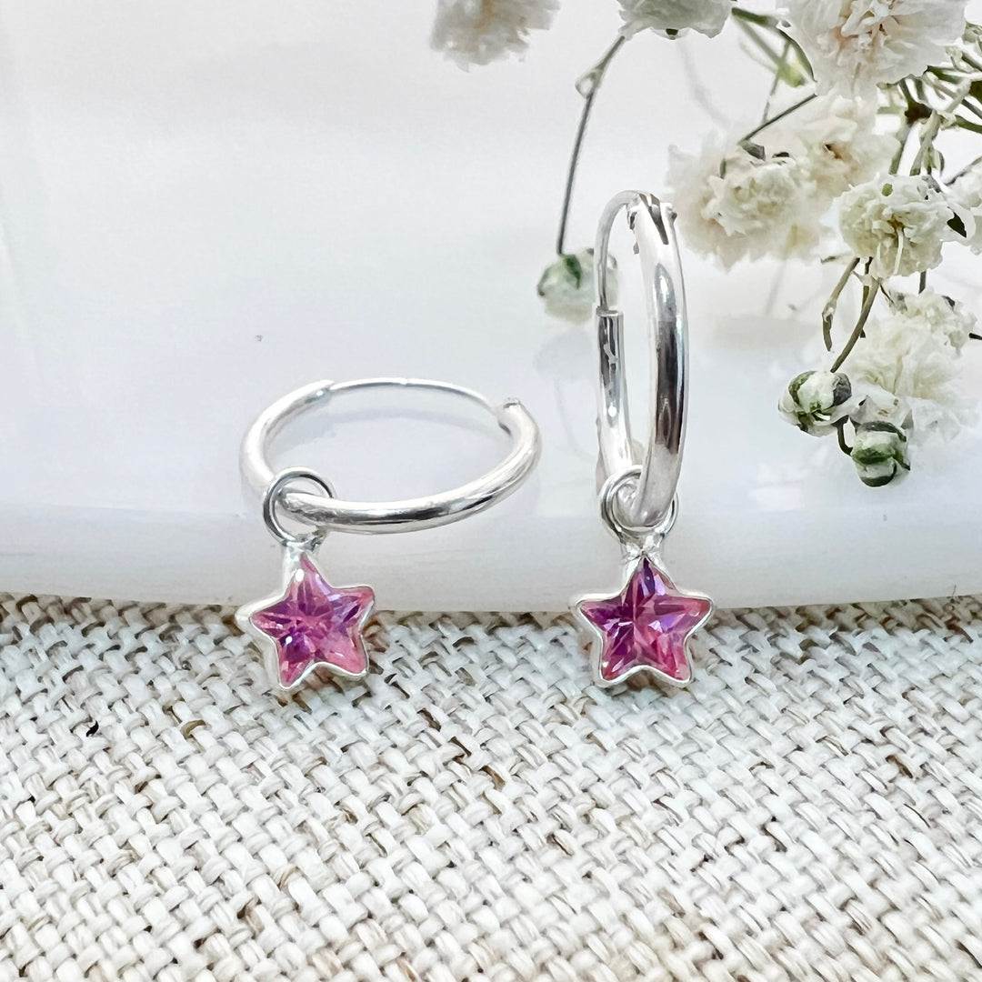 ▷ Argollas Colgantes Estrellas 💕 Rosadas | Nicola Joyería 🇨🇷