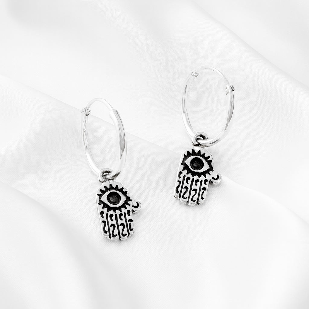 Compra online unas argollas pequeñas de plata con Mano de Fátima 🪬 en Nicola Joyería  ✔️ Envío en 48 horas ✔️ Alta Calidad ✔️ Costa Rica 🇨🇷