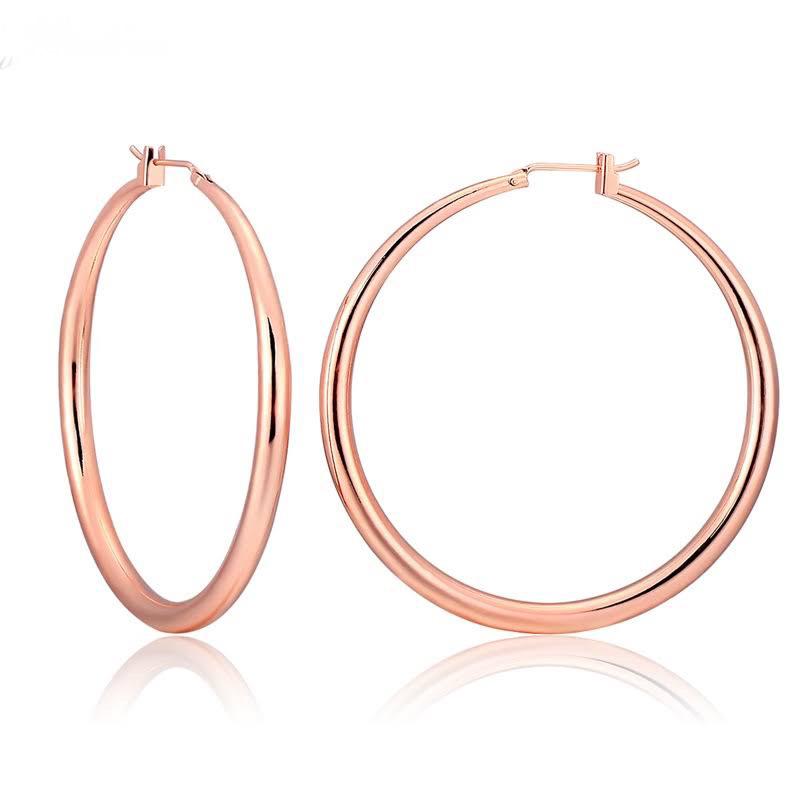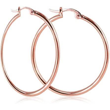 Aretes tipo argollas de acero inoxidable oro rosa con cierre tipo puente.