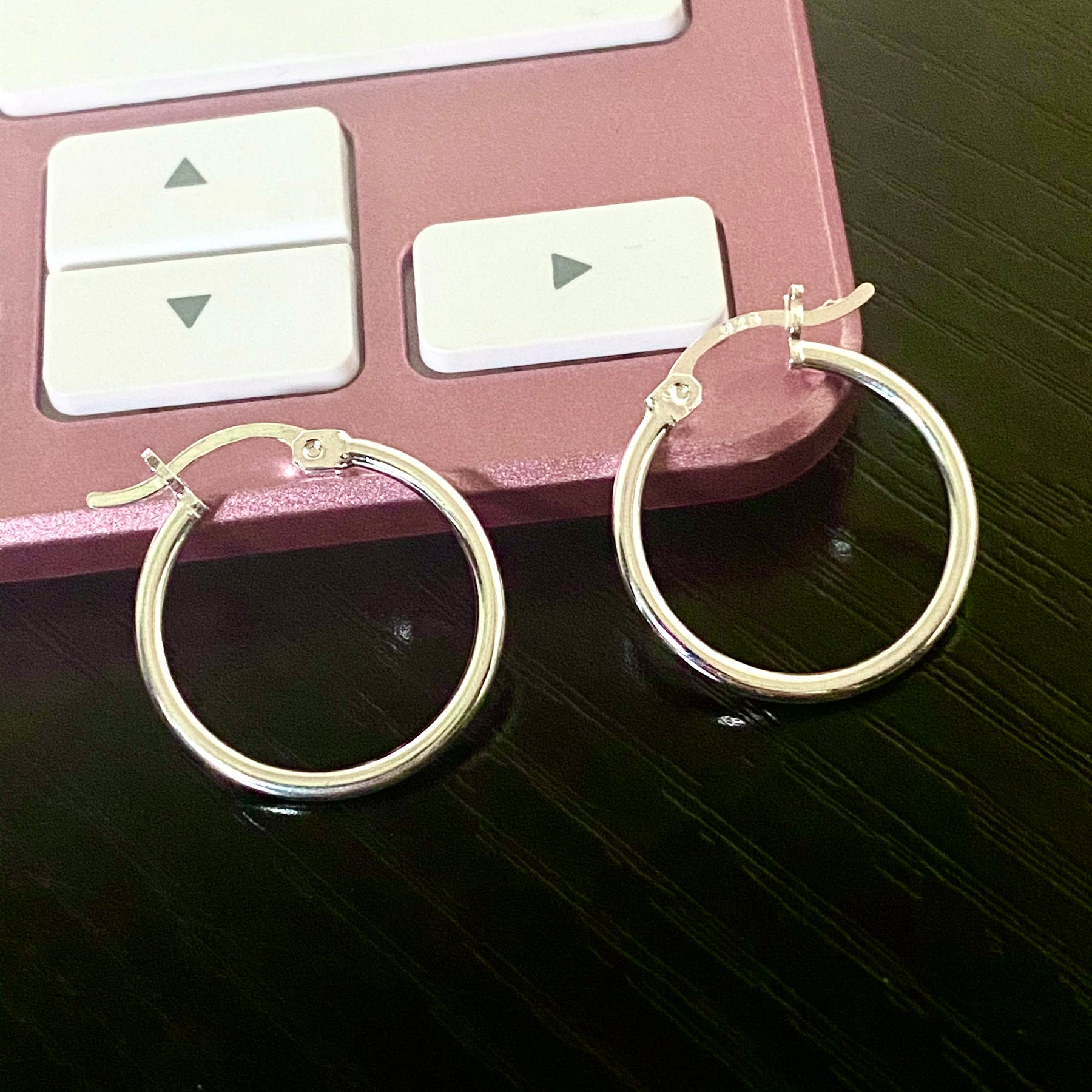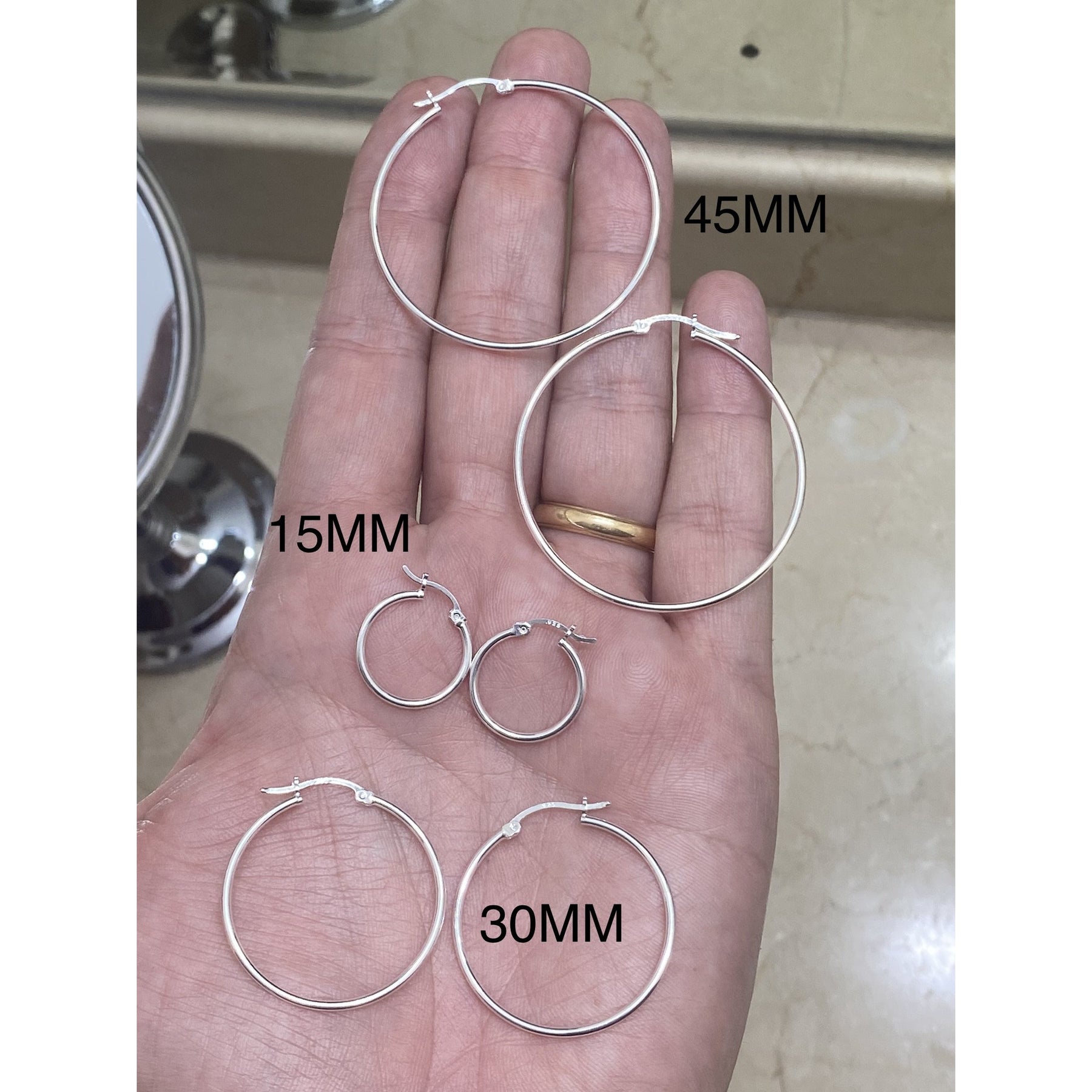 Argollas de Plata Redondas Cierre Puente en Comparación en la mano de tres diferentes medidas