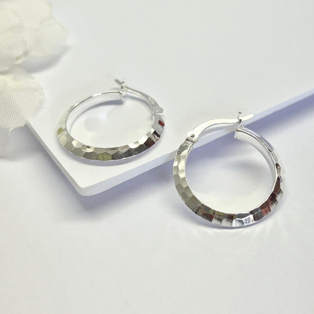 Argollas Facetada 15MM de Plata 925 | Costa Rica