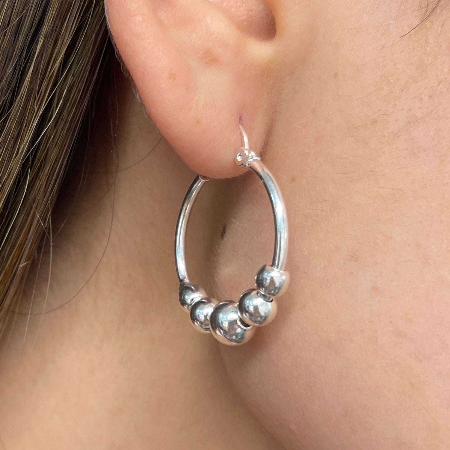 • Argollas de Plata Redondas con Cierre Seguro de Puente