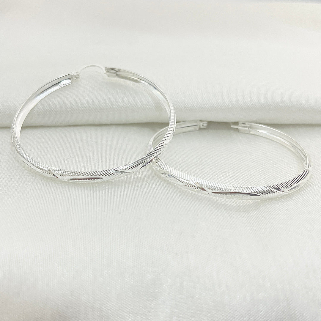 • Argollas de Plata Redondas con Cierre Seguro de Puente