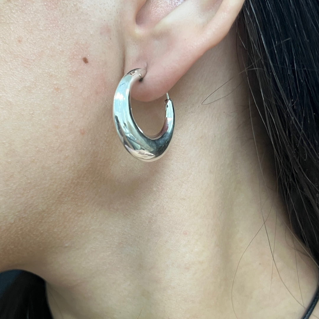 Nuestras argollas puff están hechas de plata soplada, expertamente abombadas y perfiladas para darte un aspecto etéreo y un brillo llamativo.