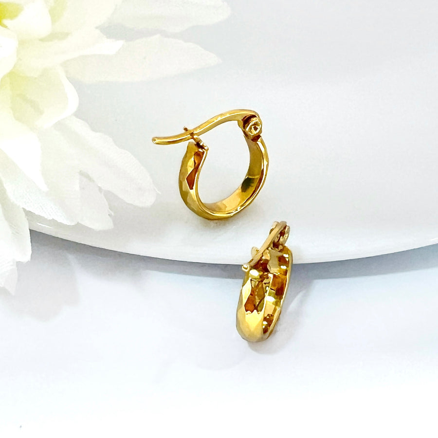 Aretes tipo argollas de acero inoxidable doradas con cierre tipo puente.
