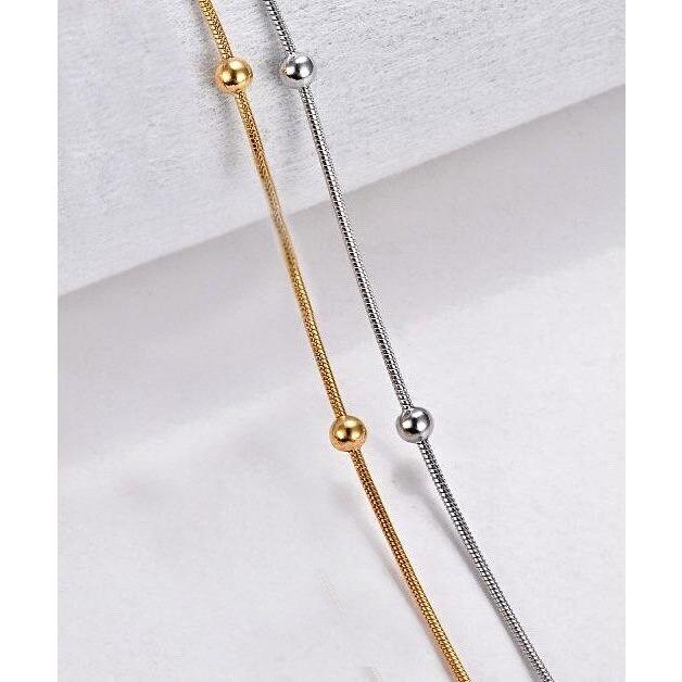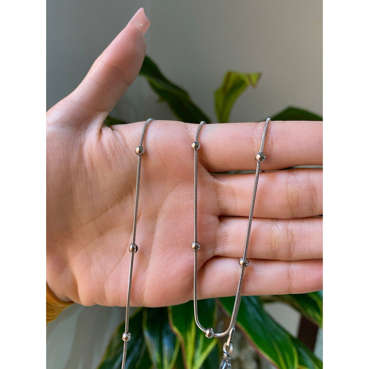Fabricada en acero inoxidable, es perfecta para cualquier conjunto. Las bolitas de 4MM añaden un toque de elegancia, mientras que la cadena tipo cola ratón garantiza un ajuste seguro.