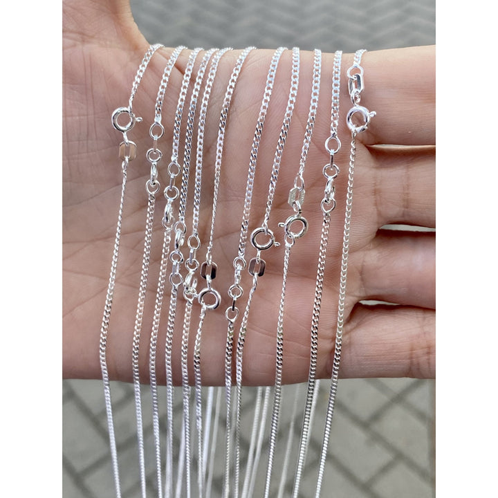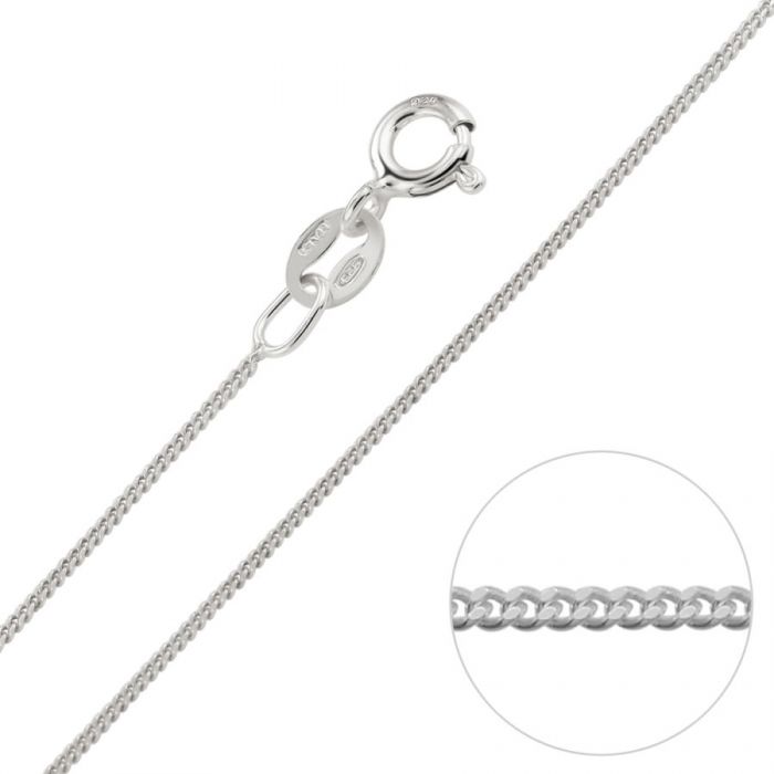 Un clásico atemporal y uno de nuestros favoritos destacados, esta lujosa cadena italiana Curb de plata de ley de 1 mm con sus icónicos eslabones de corte de diamante donde cada eslabón ha sido intrincado en facetas en ángulo para crear un deslumbrante brillo y elegante contraste. Acabado en un acabado pulido espejo alto. Como uno de los estilos de cadena más populares y versátiles, esta cadena definitivamente debería formar parte de la colección de todo usuario de joyería. Se puede usar solo o combinar perfectamente con cualquier colgante de su elección.