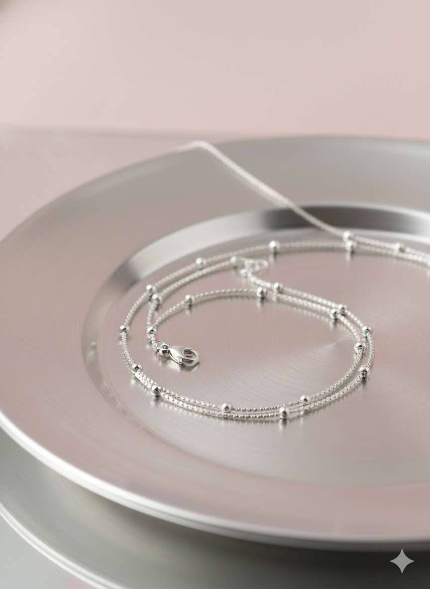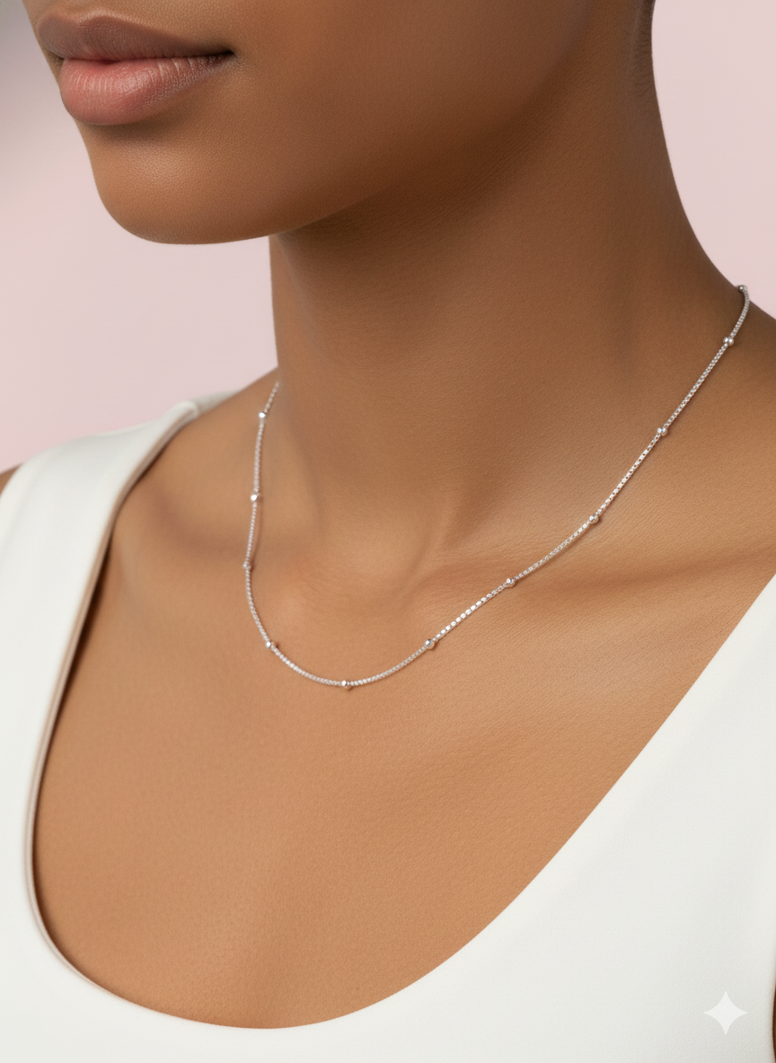 • ✨ La cadenita tiene un ancho delicado de 1 MM y las bolitas son de 2.5 MM.