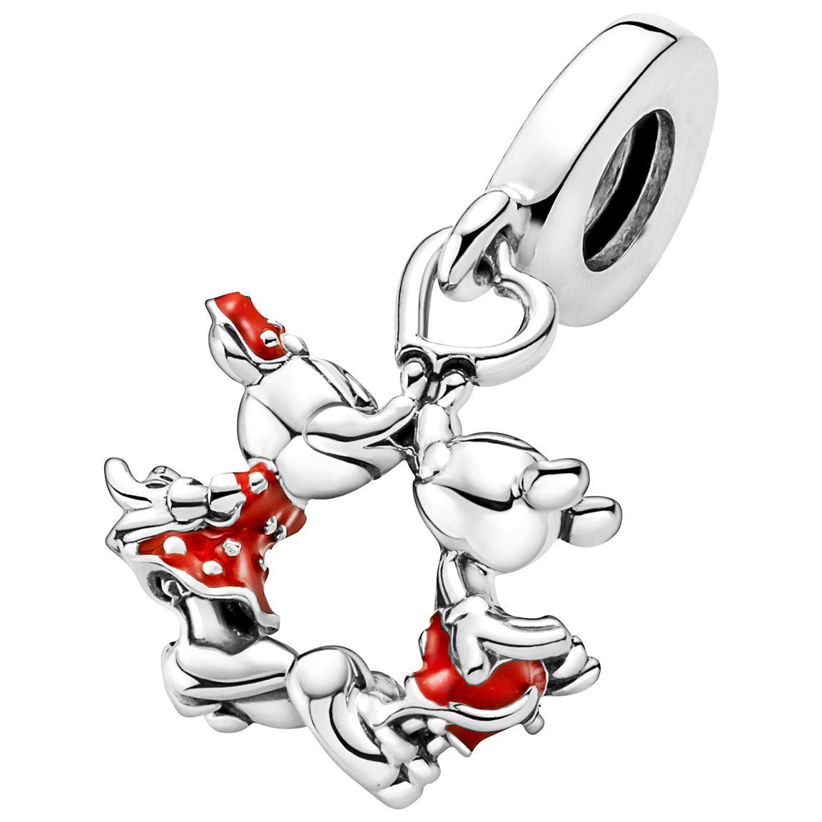 Este Charm Colgante Beso de Mickey y Minnie Mouse de Disney celebra el romance de una de las parejas más icónicas. La linda pareja besándose está acabada a mano en plata de primera ley y decorada con esmalte rojo y cuentas de plata de ley. Este adorable charm de Disney representa una pareja feliz para siempre y sería un regalo especial para la persona que amas.