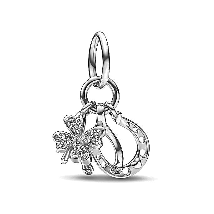 Charm hueso herradura y trébol de la suerte