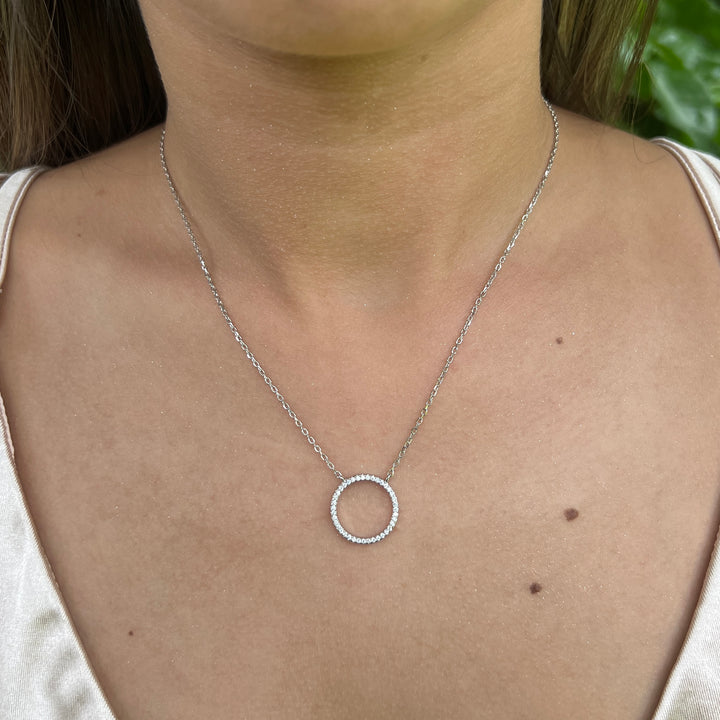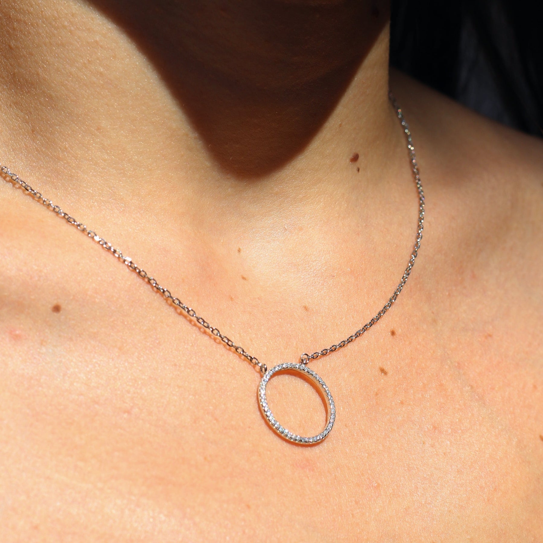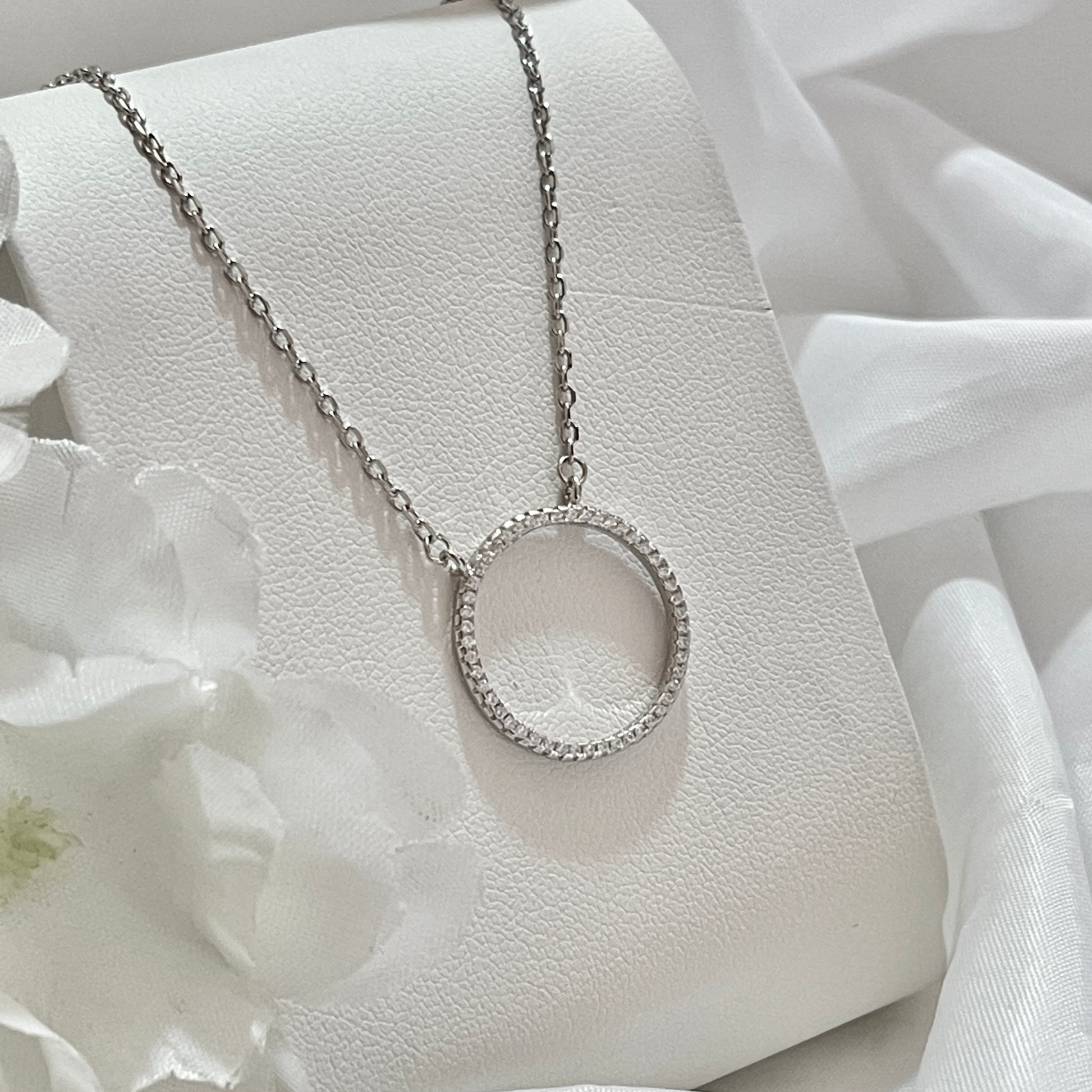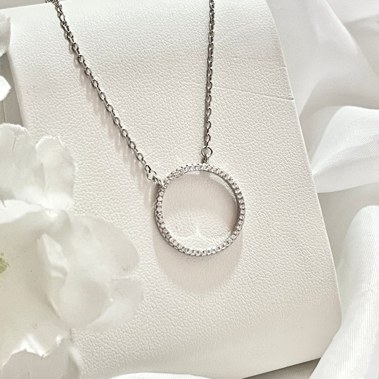 Este collar tiene algo especial. Quizá sea la impresionante plata de ley o el delicado colgante circular. O tal vez sea la forma en que brilla con la luz.